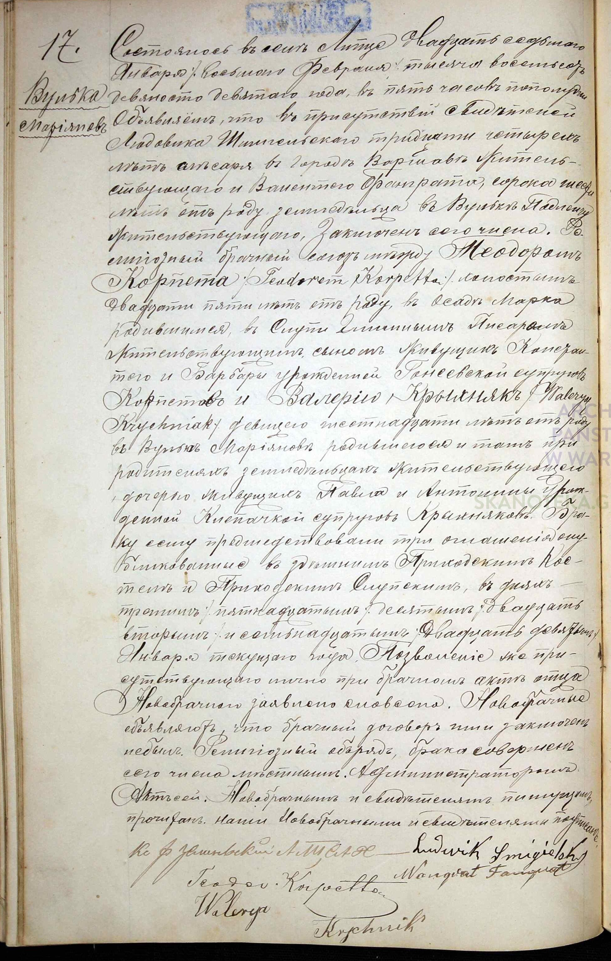 | sw.1153551 | m | Paweł | | | | | Krychniak | | | | | Akt małżeństwa: Lipce Reymontowskie (obecn. woj. łódz.), 15/1904 [indeks na http://geneteka.genealodzy.pl/] http://metryki.genealodzy.pl/metryki.php?op=kt&ar=2&zs=0998d&sy=1904&kt=2 [podgląd] |