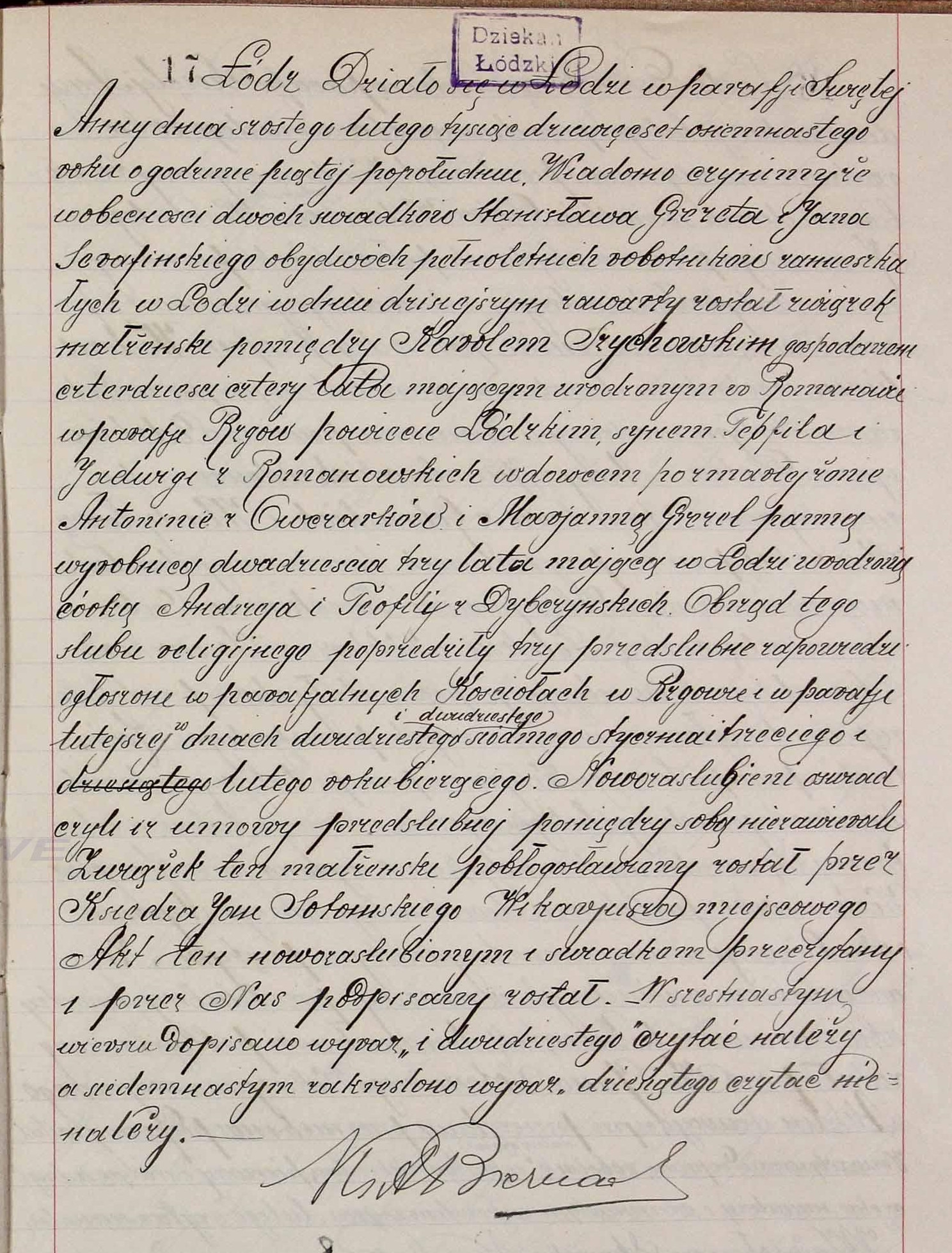 | sw.1155001 | sw.1004396 (sw.1004396) | sw.1004399 (sw.1004399) | Akt małżeństwa: Rzgów (obecn. woj. łódz.), 55/1895 [indeks na http://geneteka.genealodzy.pl/] http://metryki.genealodzy.pl/metryki.php?op=kt&ar=3&zs=1657d&sy=1895&kt=2 [podgląd] |