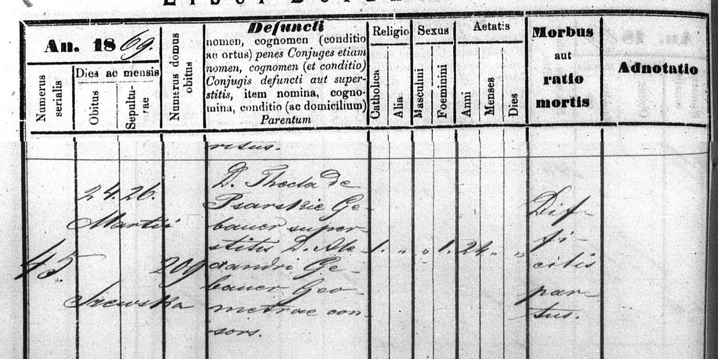 | genetekaz.11765881 | 24 | mar | 1869 | | xpar.481 | Akt zgonu: Kraków, par. Mariacka (obecn. woj. małop.), 45/1869 [podglad] | | Akt zgonu obecny w bazie Geneteka |