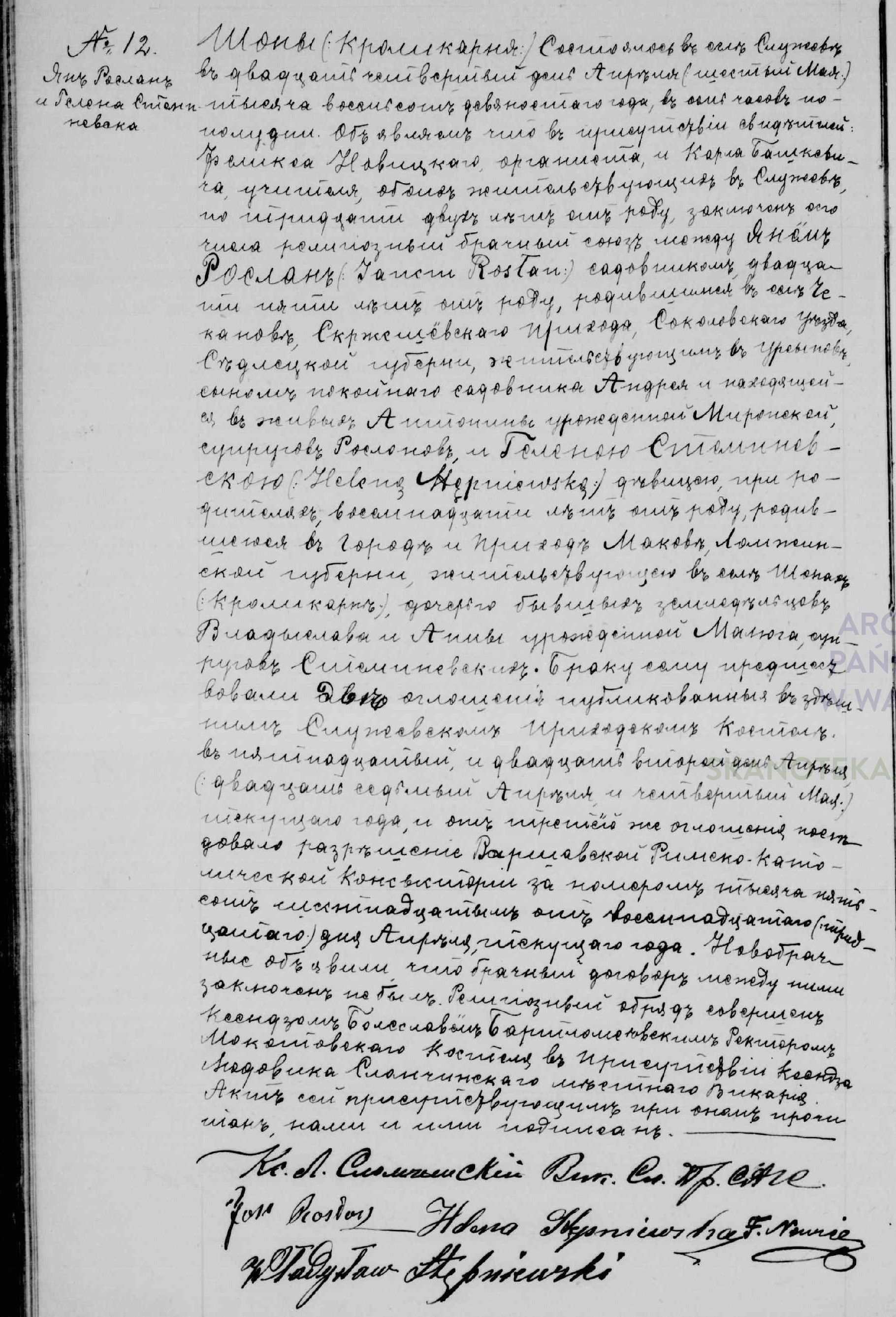| sw.1170341 | sw.1130395 (sw.1130395) | sw.1130396 (sw.1130396) | Akt małżeństwa: Warszawa-Służew św. Katarzyna (obecn. m. Warszawa), 12/1890 [indeks na http://geneteka.genealodzy.pl/] http://metryki.genealodzy.pl/metryki.php?op=kt&ar=1&zs=0175d&sy=1890&kt=2 [podgląd] |