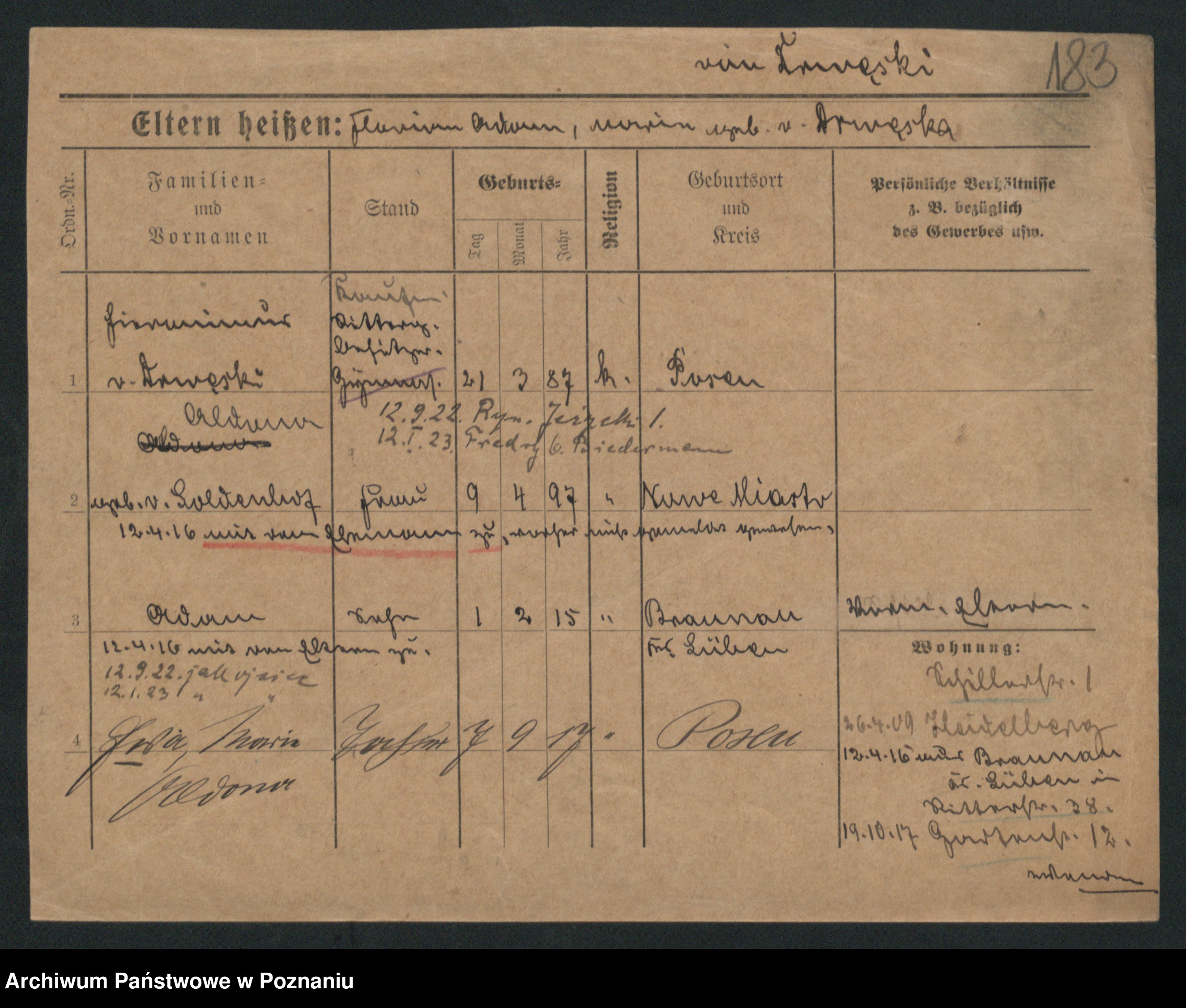 Uwaga: przydomek, nazwisko, „z”, herb, tytuł aryst. i linia są dziedziczone automatycznie z ojca na dzieci. Tu widać te wpisy, które są podane bezpośrednio przy tej osobie.Rodzice