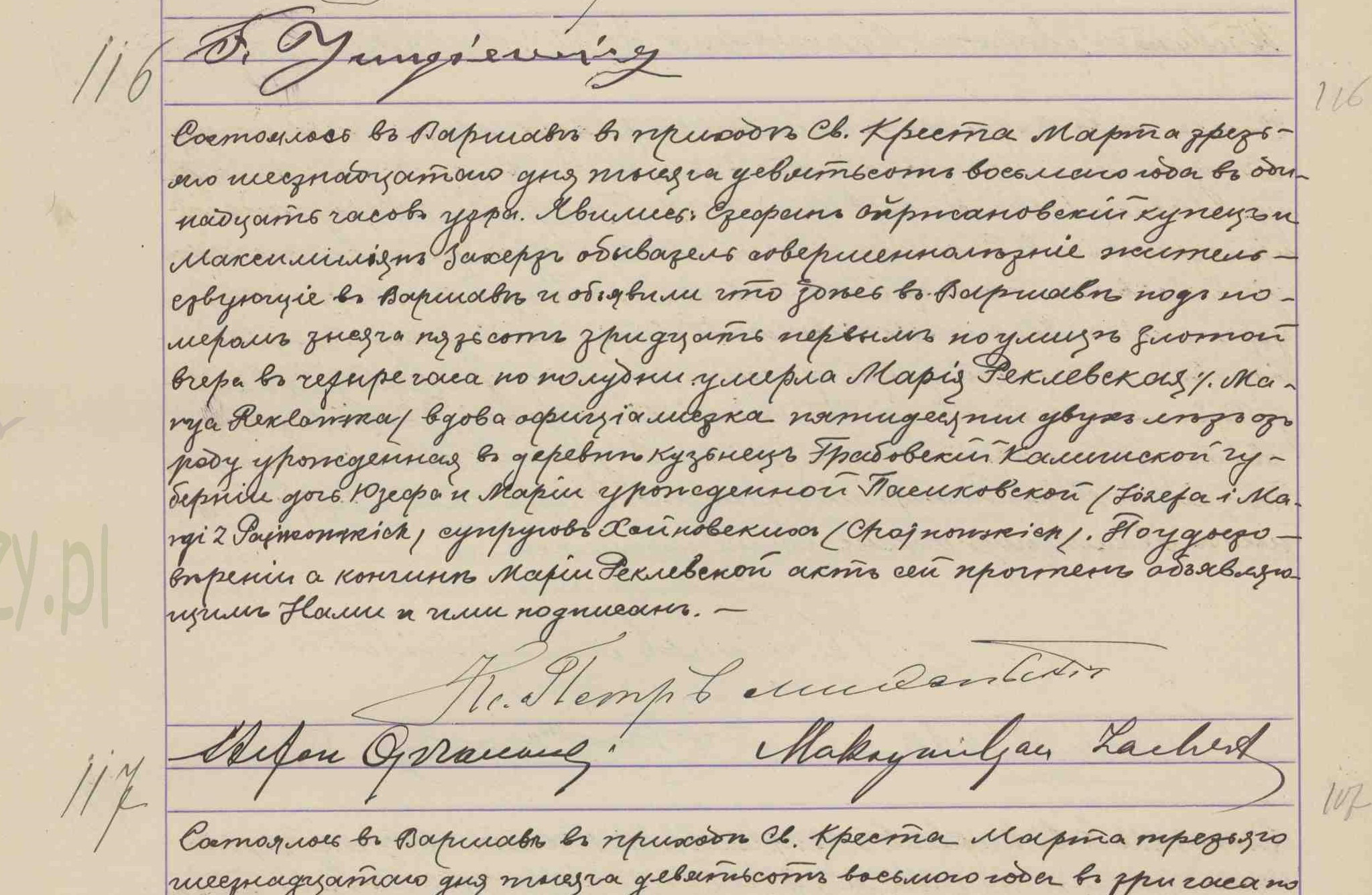 | genetekaz.11251125 | 15 | mar | 1908 | | xpar.1450 | Akt zgonu: Warszawa św. Krzyż (obecn. m. Warszawa), 116/1908 http://metryki.genealodzy.pl/metryki.php?op=kt&ar=1&zs=0158d&sy=1908a&kt=3 [podglad] | | Akt zgonu obecny w bazie Geneteka |