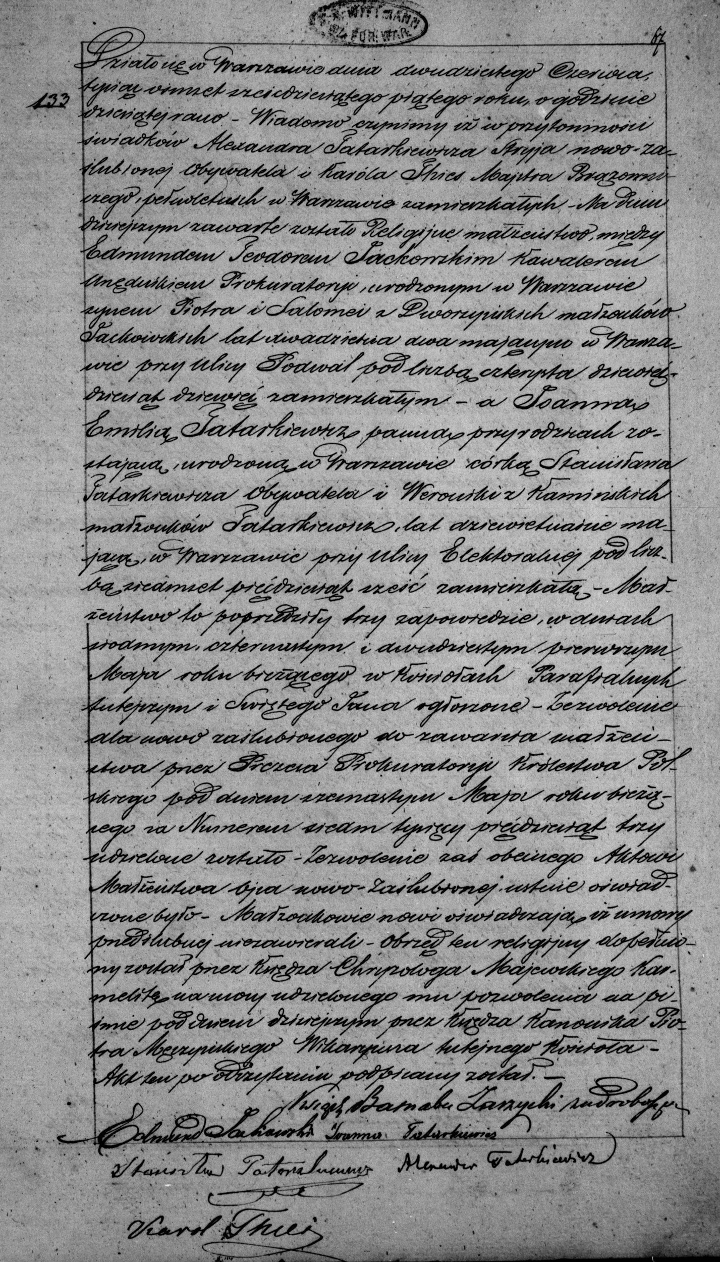 | sw.165101 | m | Stanisław | | | | | Tatarkiewicz | | | | | Akt małżeństwa: Warszawa św. Andrzej (obecn. m. Warszawa), 133/1865 [indeks na http://geneteka.genealodzy.pl/] http://metryki.genealodzy.pl/metryki.php?op=kt&ar=1&zs=0159d&sy=1865&kt=2 [podgląd] |