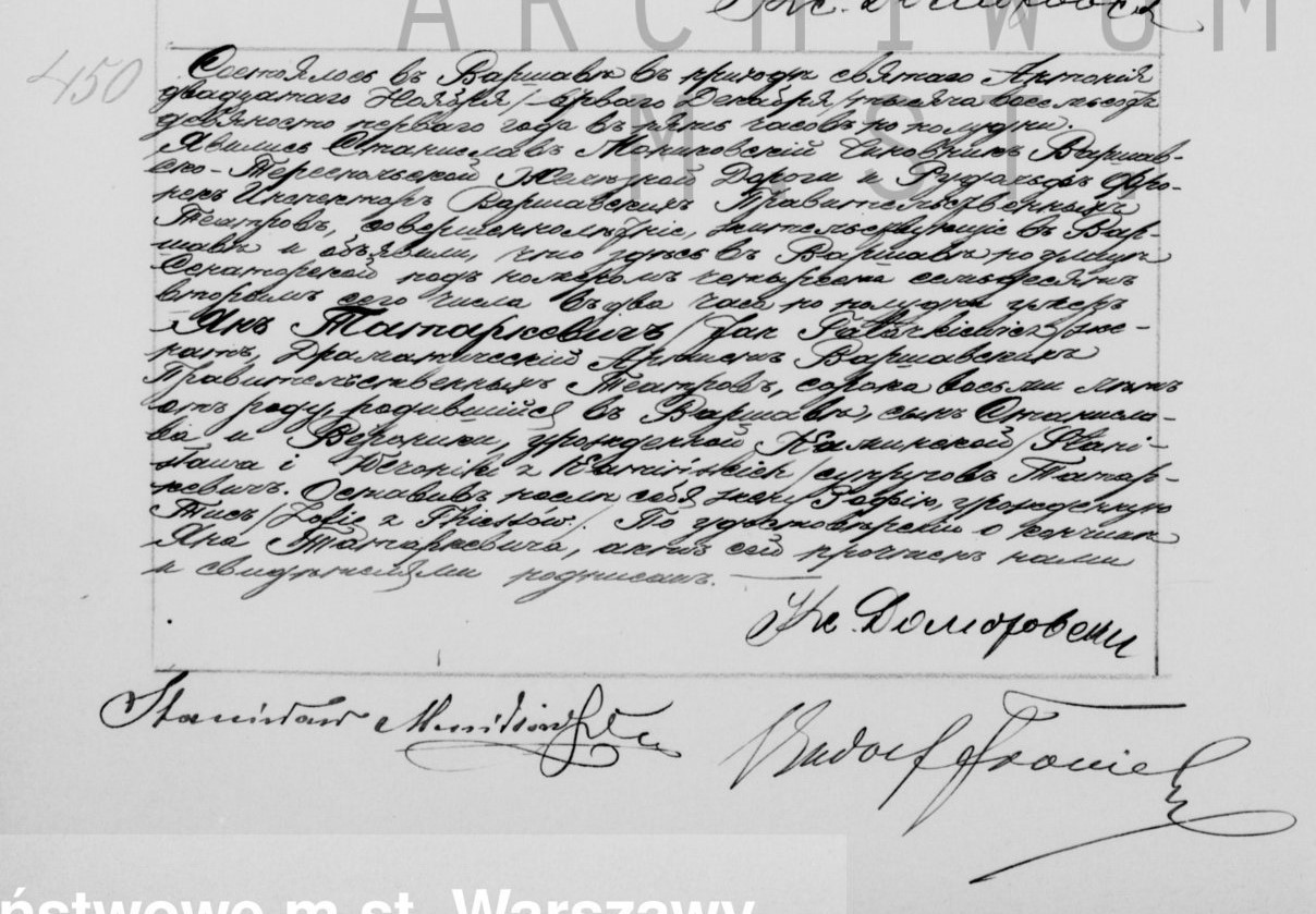 | sw.166461 | sw.166461 | sw.118684 (sw.118684) | sw.118685 (sw.118685) | Akt małżeństwa: Warszawa św. Andrzej (obecn. m. Warszawa), 94/1896 [indeks na http://geneteka.genealodzy.pl/] http://metryki.genealodzy.pl/metryki.php?op=kt&ar=1&zs=0159d&sy=1896&kt=2 [podgląd] |