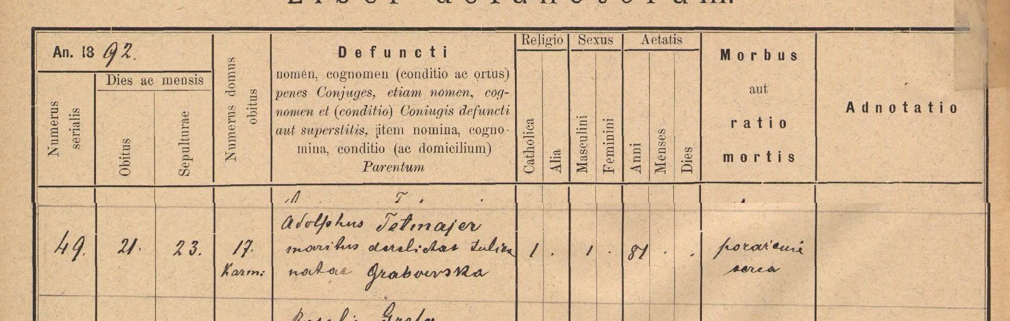 | genetekaz.11058803 | 21 | may | 1892 | xpar.480 | Akt zgonu: Kraków św. Szczepana (obecn. woj. małop.), 138_49/1892 https://szukajwarchiwach.pl/29/331/0/2#tabZespol [podglad] | Akt zgonu obecny w bazie Geneteka | ||