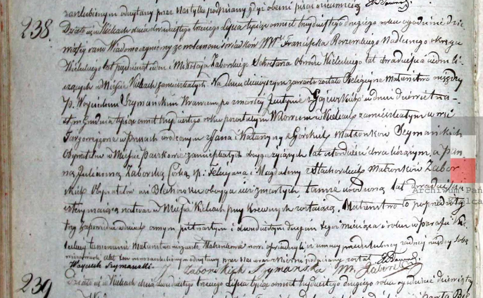 | sw.1261251 | sw.1261252 (lu.7559) | sw.1261253 (lu.7560) | Akt małżeństwa: Kielce (Katedra) (obecn. woj. świętok.), 238/1832 [indeks na http://geneteka.genealodzy.pl/] [skany tej parafii:] http://metryki.genbaza.pl/genbaza,detail,87634,79 [podgląd] |