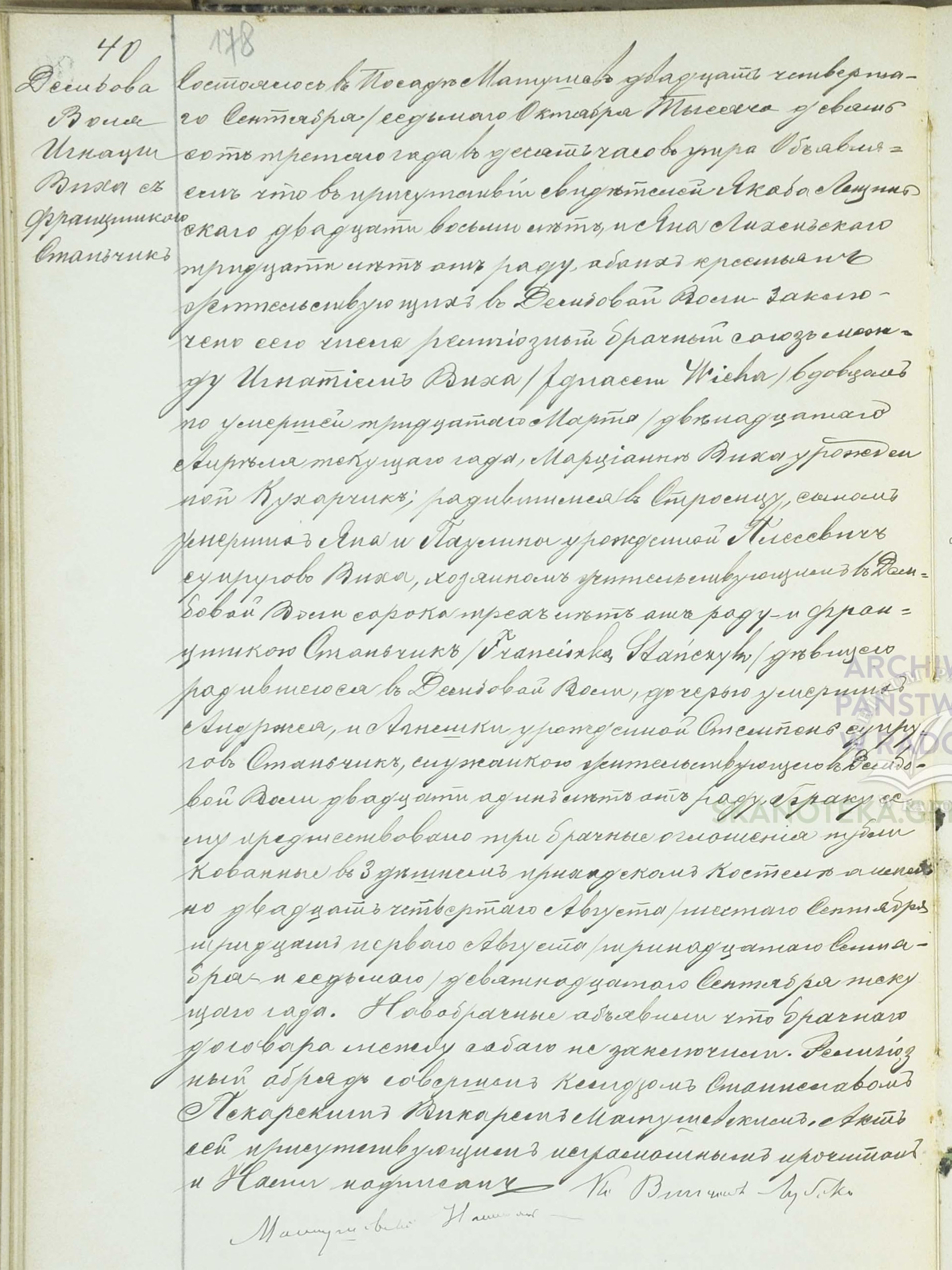 | sw.1328629 | sw.1328629 | sw.1249949 (sw.1249949) | sw.1249950 (sw.1249950) | Akt małżeństwa: Magnuszew (obecn. woj. mazow.), 28/1901 [indeks na http://geneteka.genealodzy.pl/] http://metryki.genealodzy.pl/metryki.php?op=kt&ar=4&zs=0146d&sy=1901&kt=2 [podgląd] |
