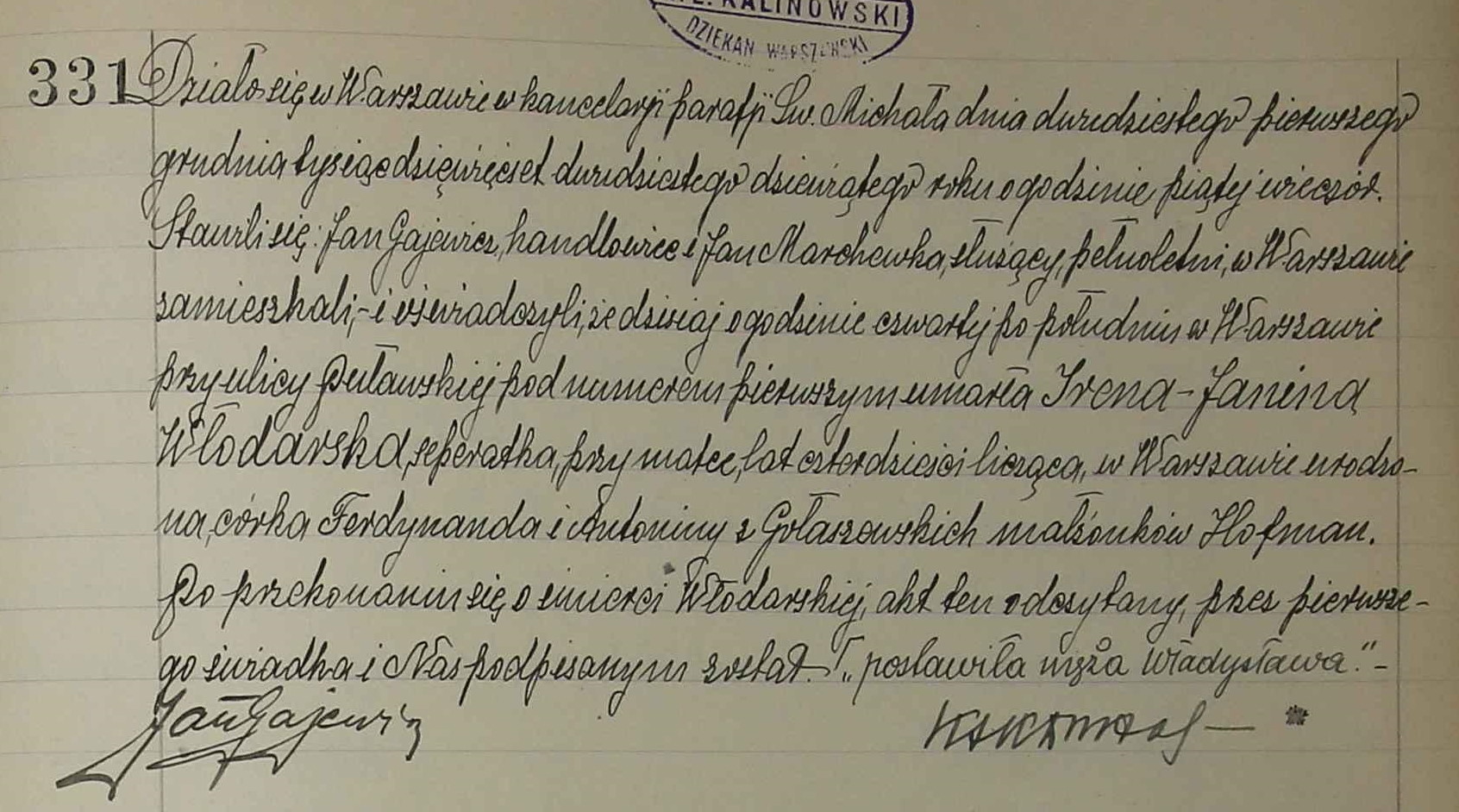 | genetekaz.9737788 | 21 | dec | 1929 | | xpar.3829 | Akt zgonu: Warszawa-Mokotów św. Michał (obecn. m. Warszawa), 331/1929 http://metryki.genealodzy.pl/ar8-zs9247d [podglad] | | Akt zgonu obecny w bazie Geneteka |