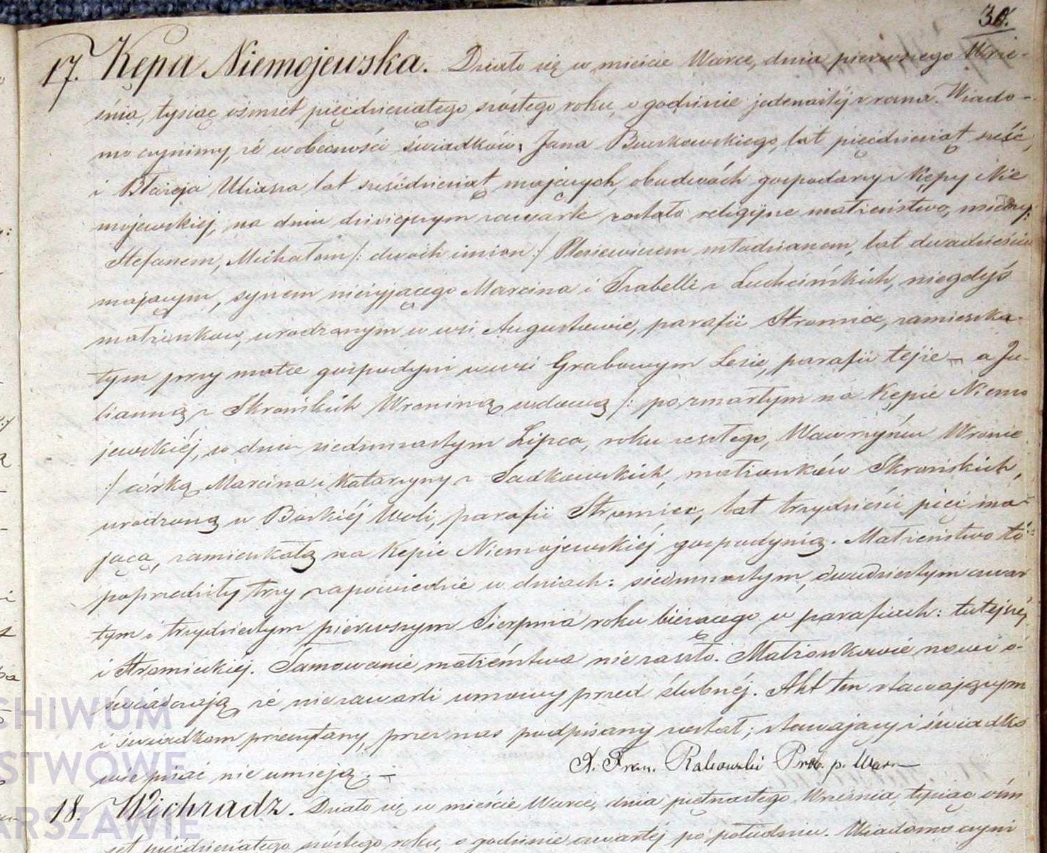 | sw.1266245 | sw.1266246 (sw.1266246) | 1830 | xpar.792 | Akt małżeństwa: Stromiec (obecn. woj. mazow.), rok 1830, nr aktu 33 [indeks na http://geneteka.genealodzy.pl/] http://szukajwarchiwach.pl/58/163/0/1/10/str/1/1/15#tabJednostka | Akt ślubu obecny w bazie Geneteka |
