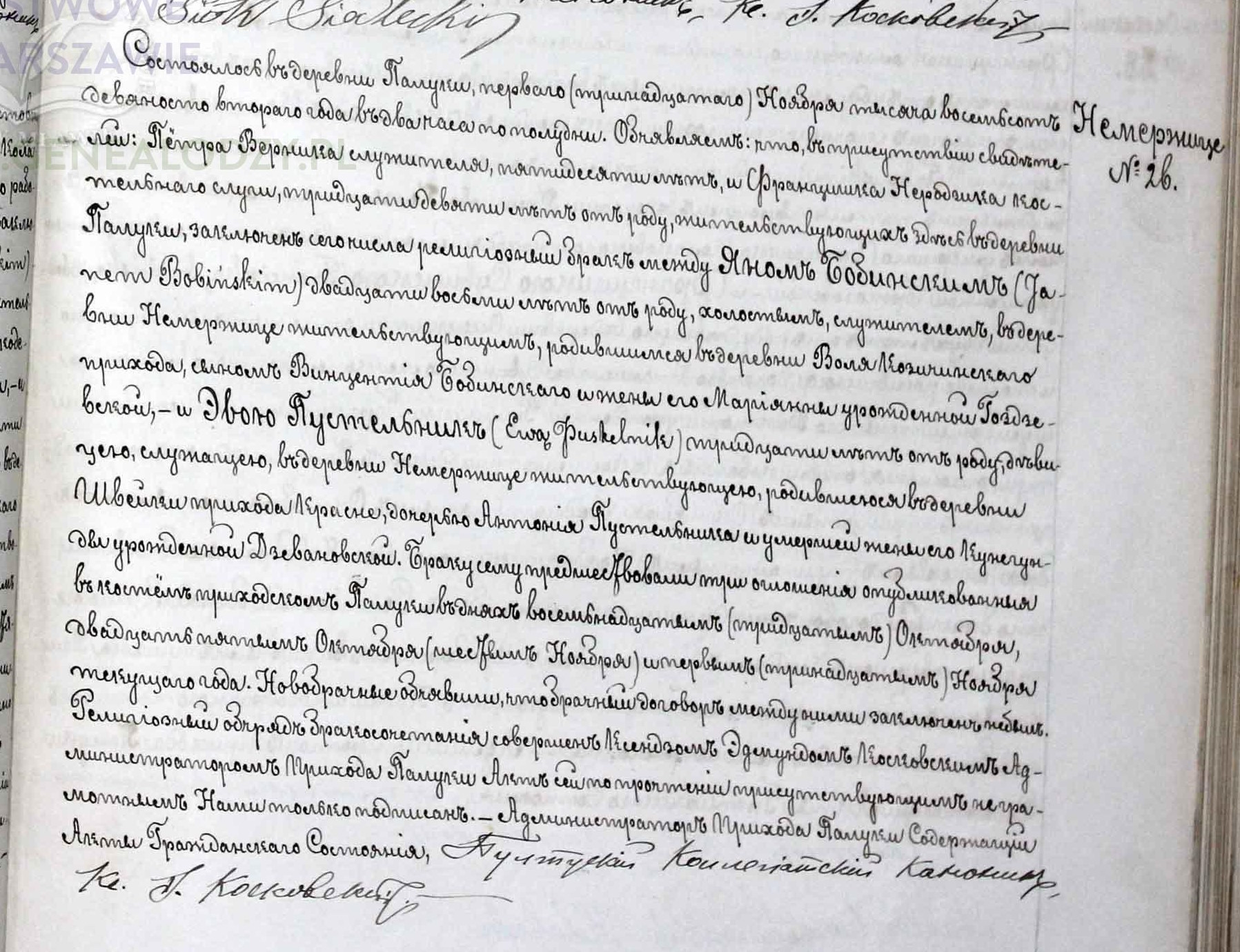 | sw.1328281 | sw.1328281 | sw.1266605 (sw.1266605) | sw.1266606 (sw.1266606) | Akt małżeństwa: Pałuki (obecn. woj. mazow.), 26/1892 [indeks na http://geneteka.genealodzy.pl/] http://metryki.genealodzy.pl/metryki.php?op=kt&ar=13&zs=0151d&sy=1892&kt=2 [podgląd] |