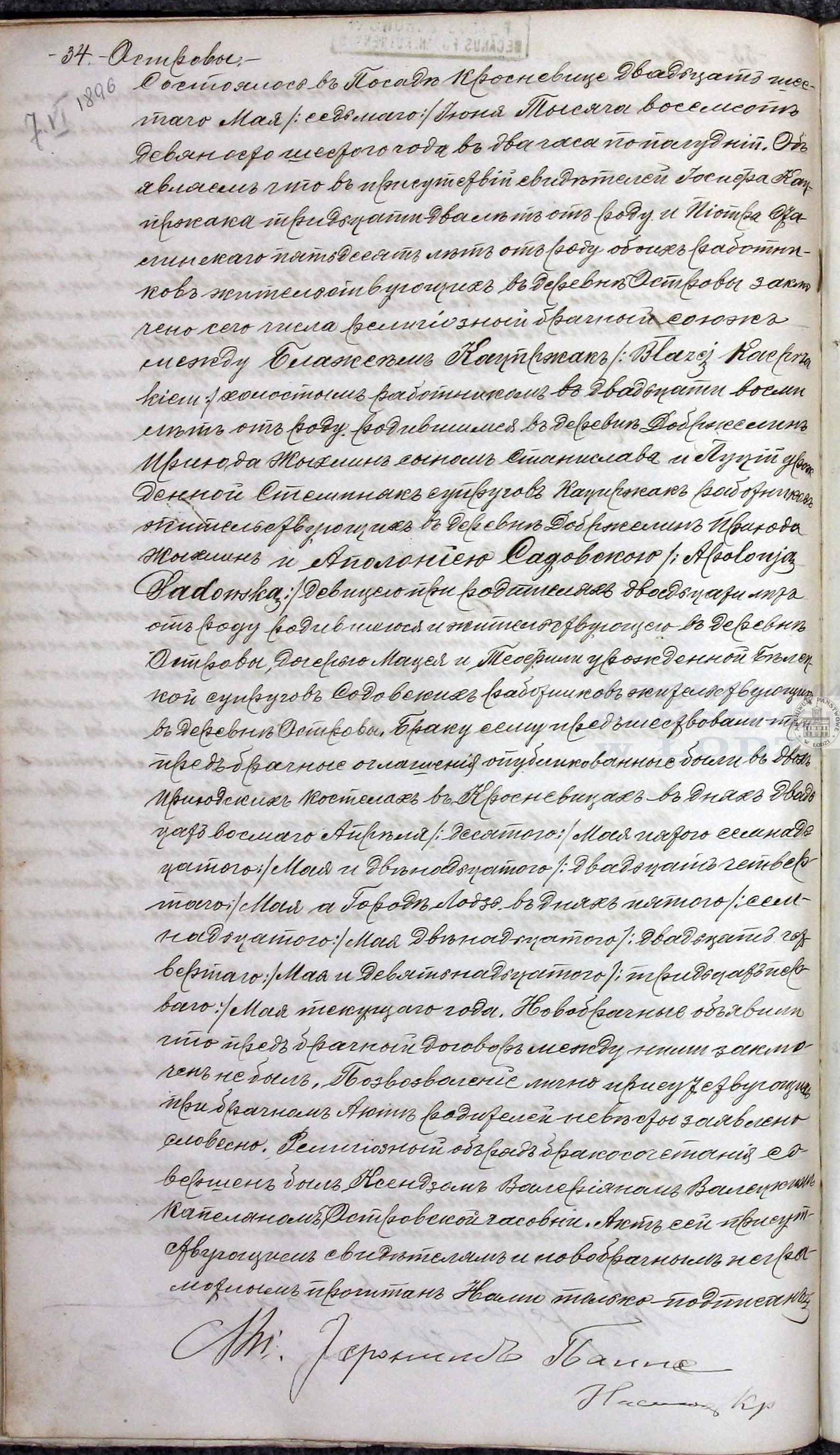 | sw.990316 | sw.990316 | sw.136315 (sw.136315) | sw.136432 (sw.136432) | Akt małżeństwa: Krośniewice (obecn. woj. łódz.), 34/1896 [indeks na http://geneteka.genealodzy.pl/] http://metryki.genealodzy.pl/metryki.php?op=kt&ar=3&zs=1529d&sy=1896&kt=2 [podgląd] |