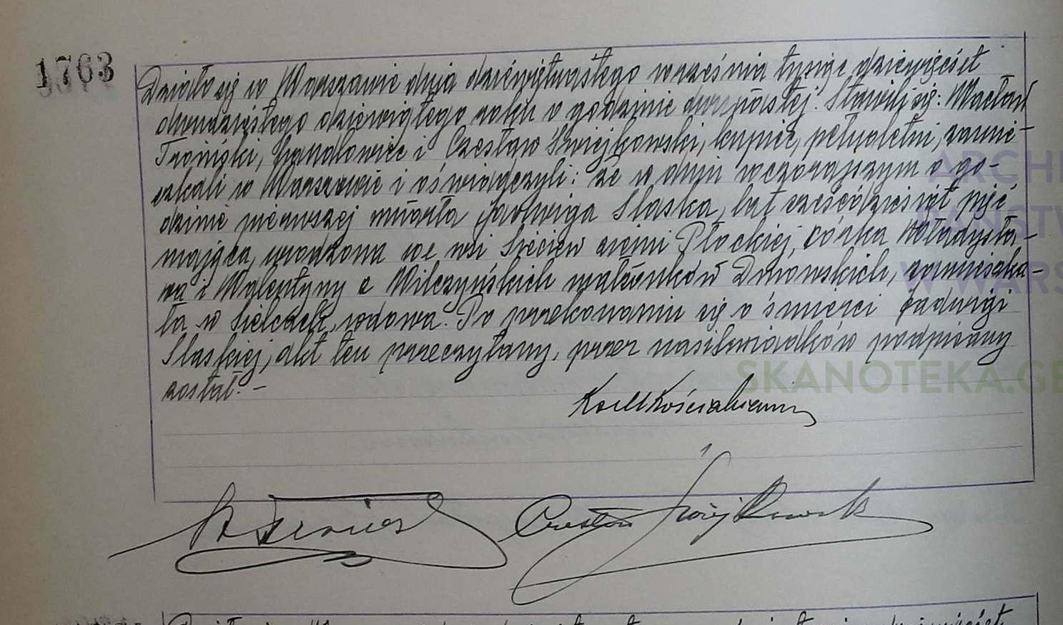 | sw.13966 | sw.654192 (sw.654192) | Akt małżeństwa: Małkinia Górna (obecn. woj. mazow.), 20/1911 [indeks na http://geneteka.genealodzy.pl/] http://metryki.genealodzy.pl/metryka.php?ar=6&zs=0847d&sy=1911&kt=2&plik=020.jpg [podgląd] | ||||||||