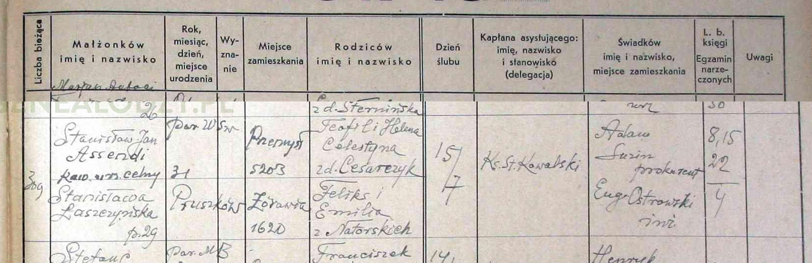 | sw.14538 | sw.605161 | sw.14001 (sw.14001) | sw.268514 (sw.14537) | Akt małżeństwa: Pruszków (obecn. woj. mazow.), 1/1929 [indeks na http://geneteka.genealodzy.pl/] http://metryki.genealodzy.pl/metryki.php?op=kt&ar=12&zs=9001d&sy=4010&kt=2 [podgląd] |