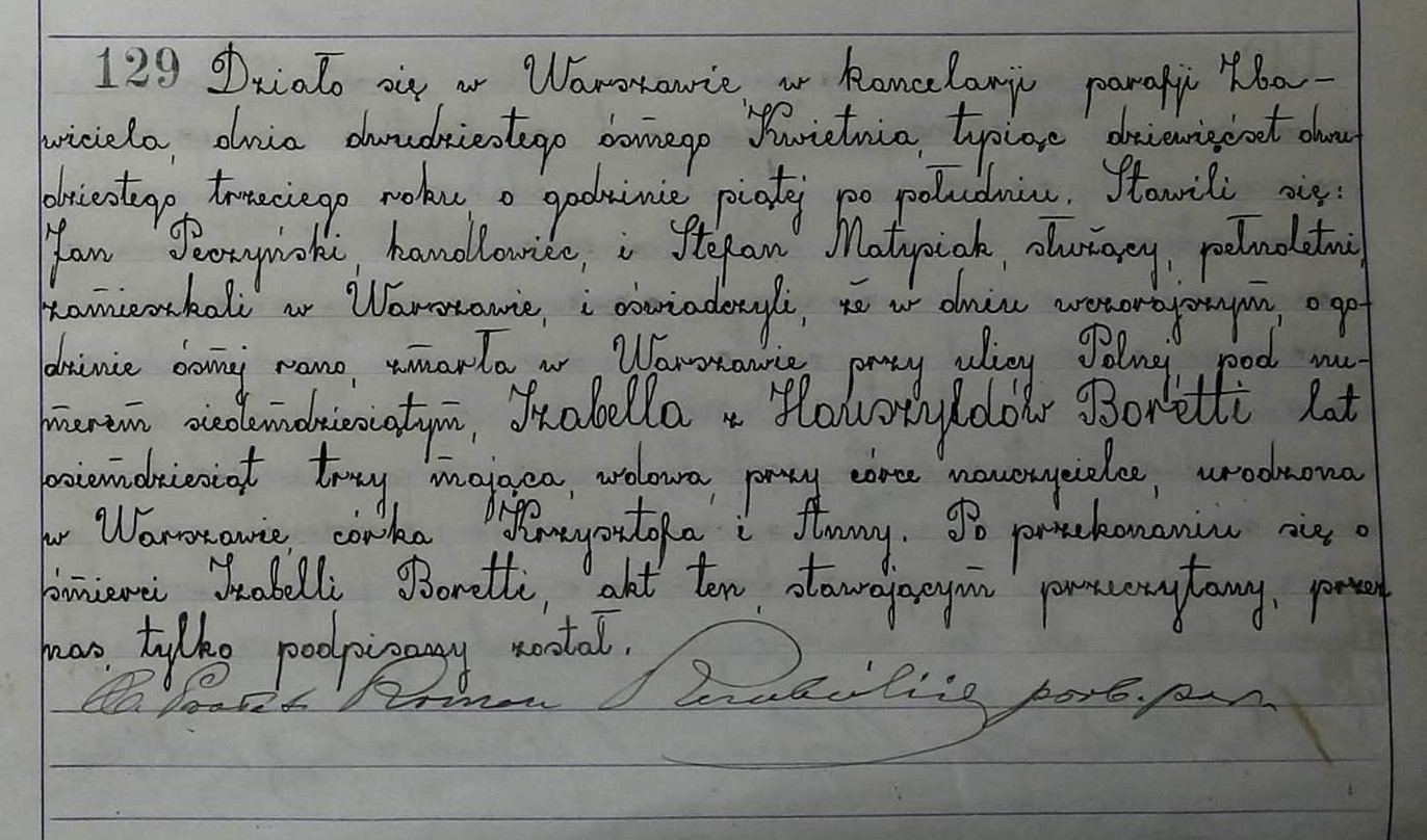| genetekaz.11656568 | 27 | apr | 1923 | | xpar.3828 | Akt zgonu: Warszawa Najświętszego Zbawiciela (obecn. m. Warszawa), 129/1923 http://localhost/mjm/zbawiciel_1923_124-129.jpg [podglad] | | Akt zgonu obecny w bazie Geneteka |