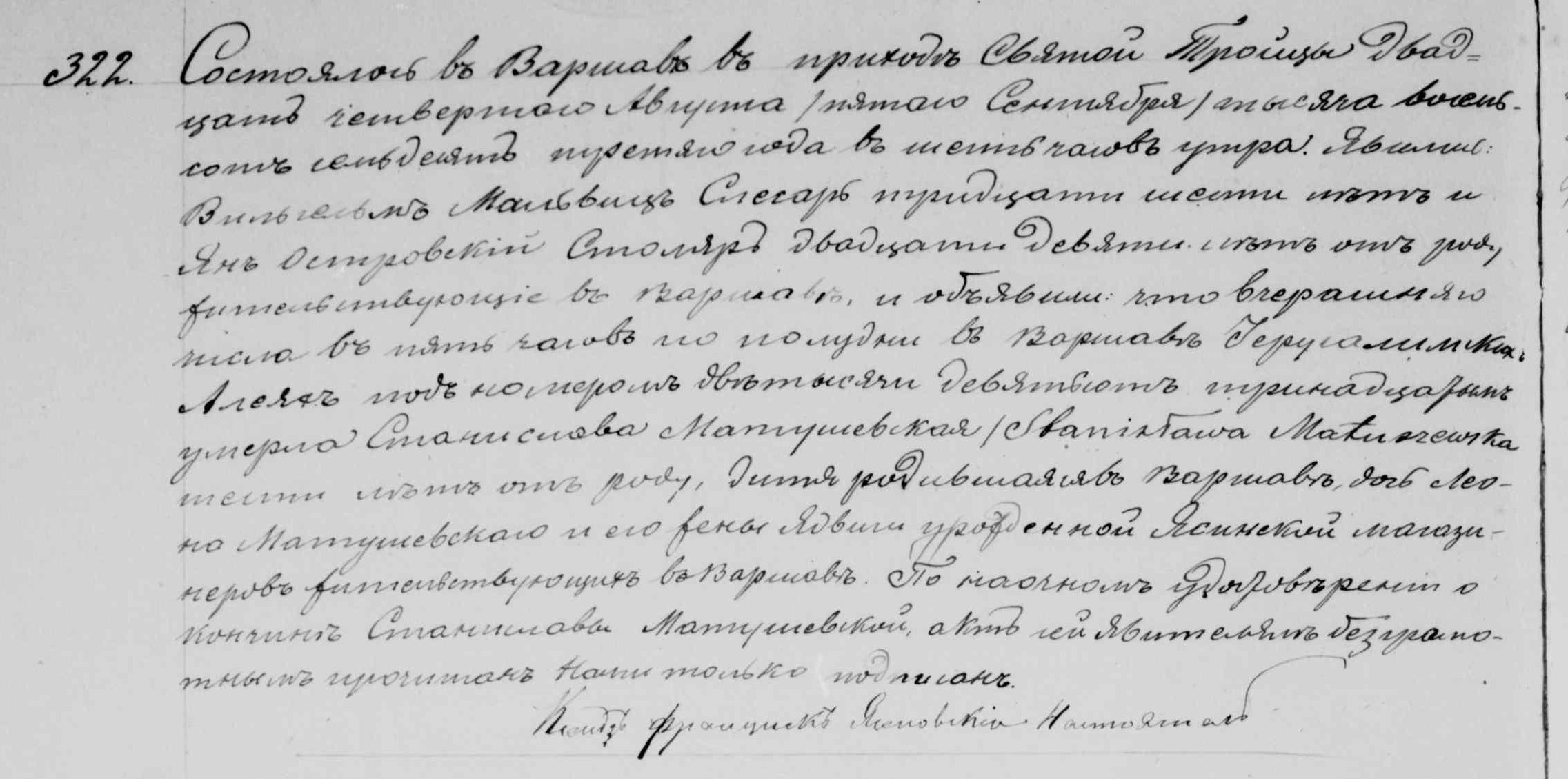 | sw.723891 | sw.723891 | sw.144766 (sw.144766) | sw.144767 (sw.144767) | Akt urodzenia: Warszawa św. Andrzej (obecn. m. Warszawa), 173/1867 [indeks na http://geneteka.genealodzy.pl/] http://szukajwarchiwach.pl/72/159/0/-/73/skan/full/qc8chM8c8dS4jYwxiSmjjw |