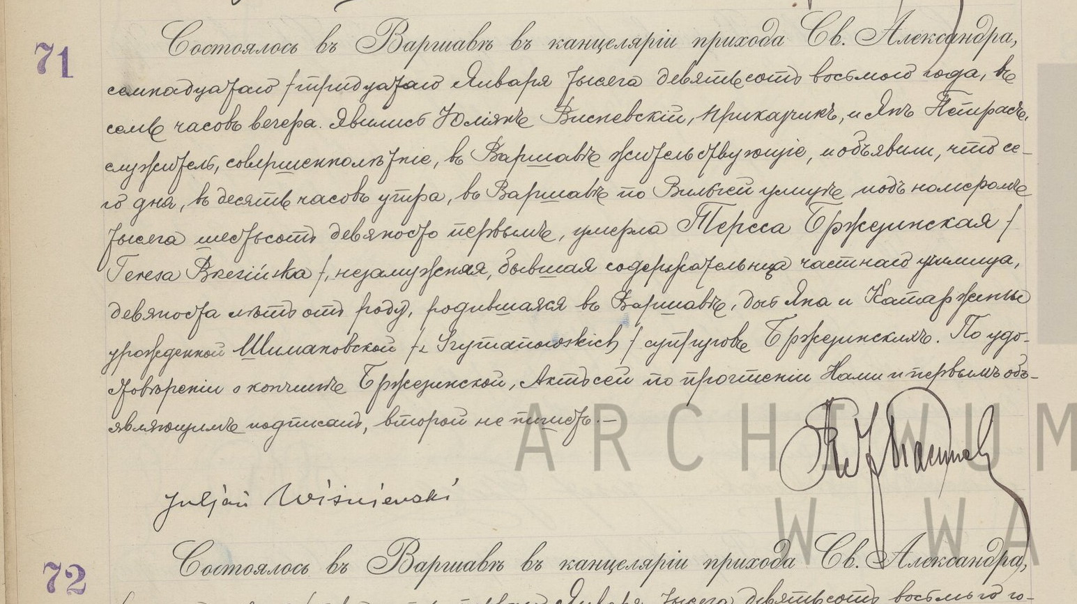 | genetekaz.11344071 | 30 | jan | 1908 | xpar.1442 | Akt zgonu: Warszawa św. Aleksander (obecn. m. Warszawa), 71/1908 http://localhost/mjm/aleksander_1908_159_37_0357.jpg [podglad] | Akt zgonu obecny w bazie Geneteka | ||