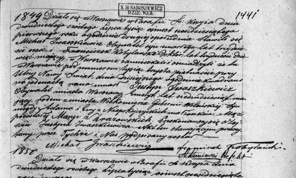 | sw.282805 | m | Justyn | | | | | | | | | | Akt zgonu: Warszawa, par. św. Krzyża, 1849/1861 |