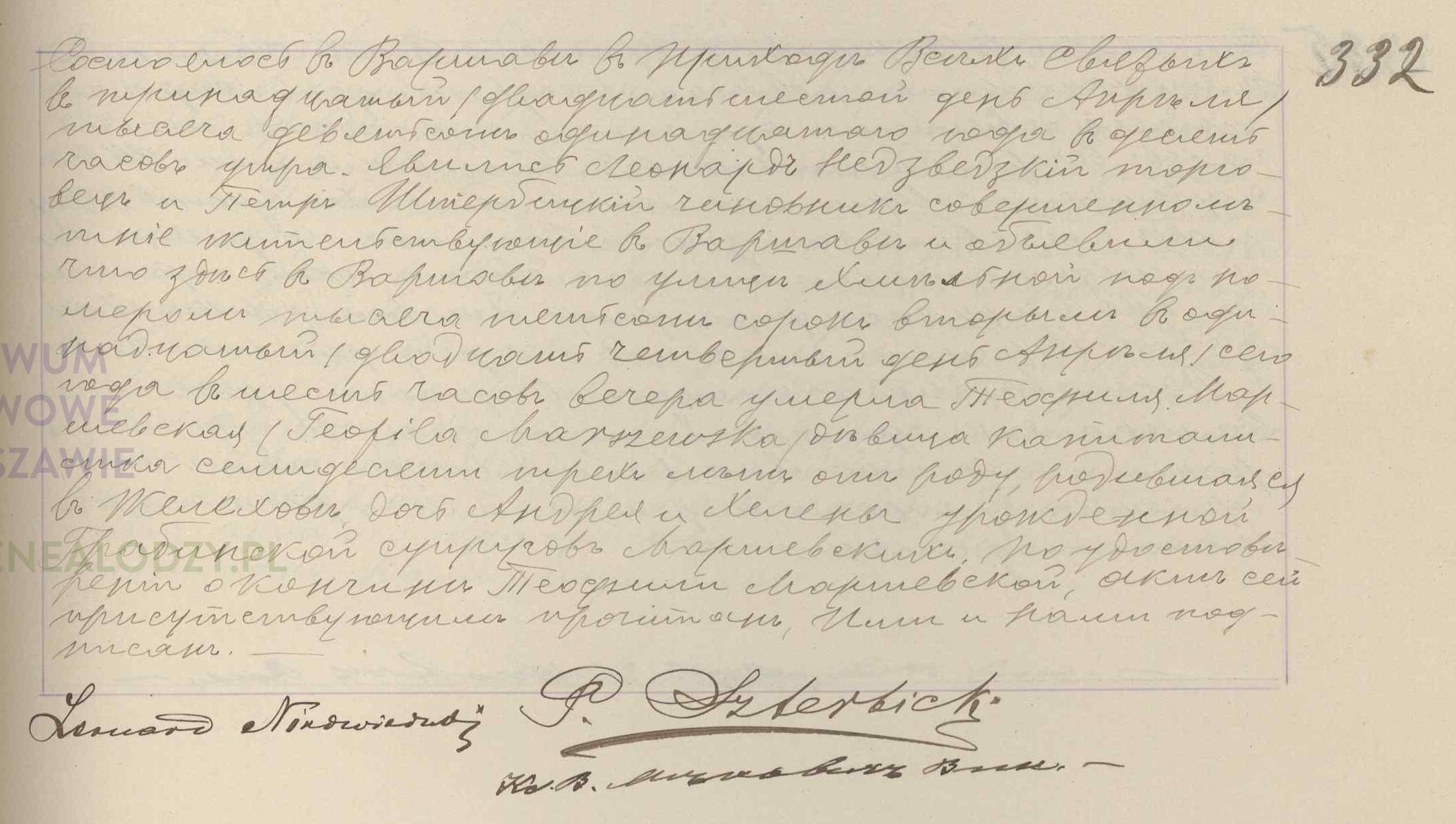 | genetekaz.11471651 | 24 | apr | 1911 | xpar.1454 | Akt zgonu: Warszawa Wszystkich Świętych (obecn. m. Warszawa), 332/1911 http://localhost/mjm/wwswietych_1911_0328-0333.jpg [podglad] | Akt zgonu obecny w bazie Geneteka | ||