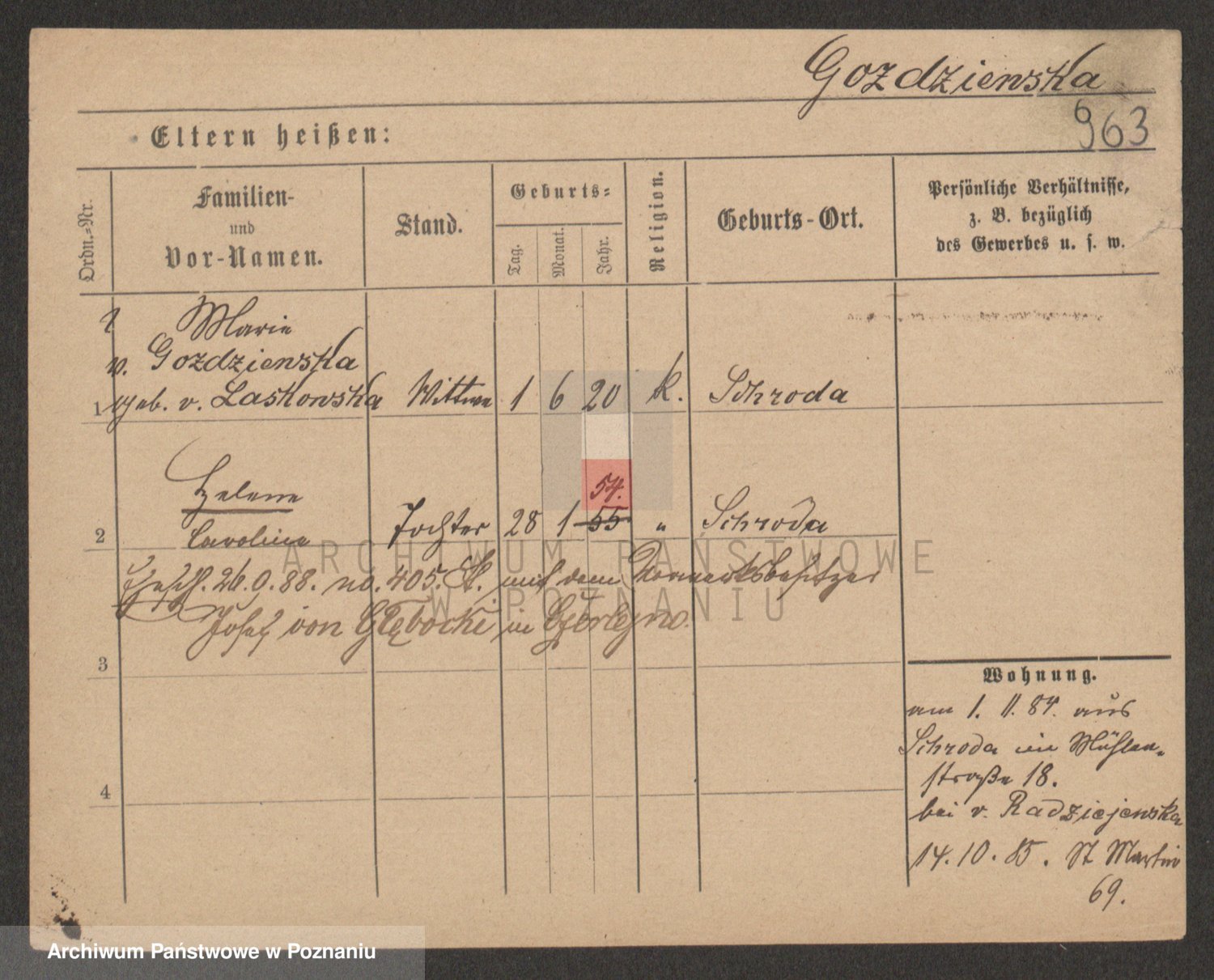 | sw.153294 | sw.153295 (psb.6772.1) | 27 | sep | 1888 | | Poznań, par. św. Marcina | | | | Teki Dworzaczka: Regesty i Metryki, opracowała p. Maria Okińczyc |
