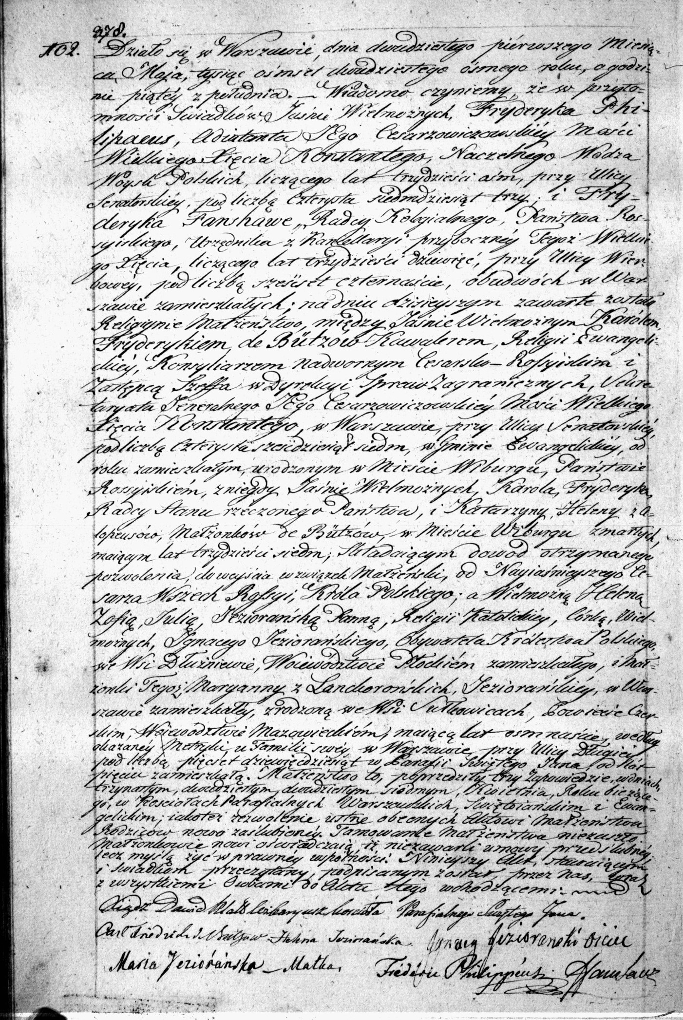 | sw.407614 | sw.407614 | sw.155423 (sw.155423) | sw.155424 (sw.155424) | Akt małżeństwa: Warszawa ASC Cyrkuł VII (obecn. m. Warszawa), 64/1818 [indeks na http://geneteka.genealodzy.pl/] http://metryki.genealodzy.pl/metryka.php?ar=1&zs=0189d&sy=123&kt=2&skan=064.jpg [podgląd] |
