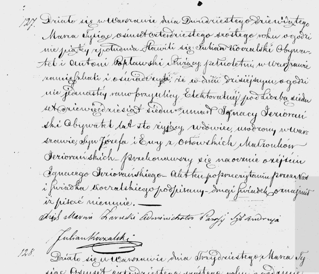 | genetekaz.3537299 | 29 | mar | 1846 | | xpar.1443 | Akt zgonu: Warszawa św. Andrzej (obecn. m. Warszawa), 127/1846 http://szukajwarchiwach.pl/72/159/0/-/16/skan/full/KHnnnerRJbkhcLJWhfjamA [podglad] | | Akt zgonu obecny w bazie Geneteka |