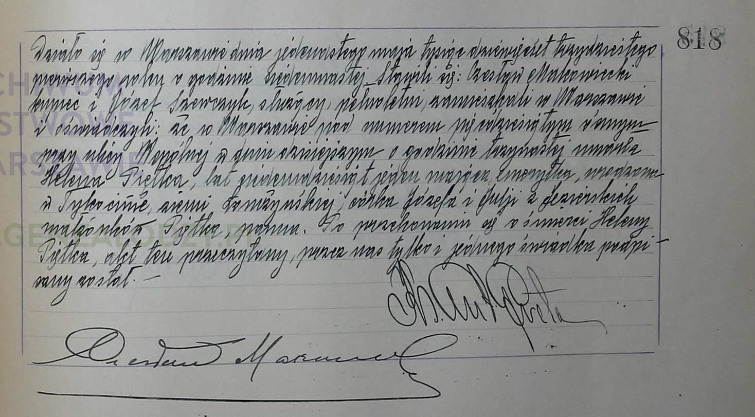 | sw.156778 | | | 1860 | | | | rodzi dziecko | Akt małżeństwa: Warszawa Wsz. Św. (obecn. m. Warszawa), 98/1895 [indeks na http://geneteka.genealodzy.pl/] http://metryki.genealodzy.pl/metryka.php?ar=8&zs=9264d&sy=319&kt=1&skan=098.jpg [podgląd] |