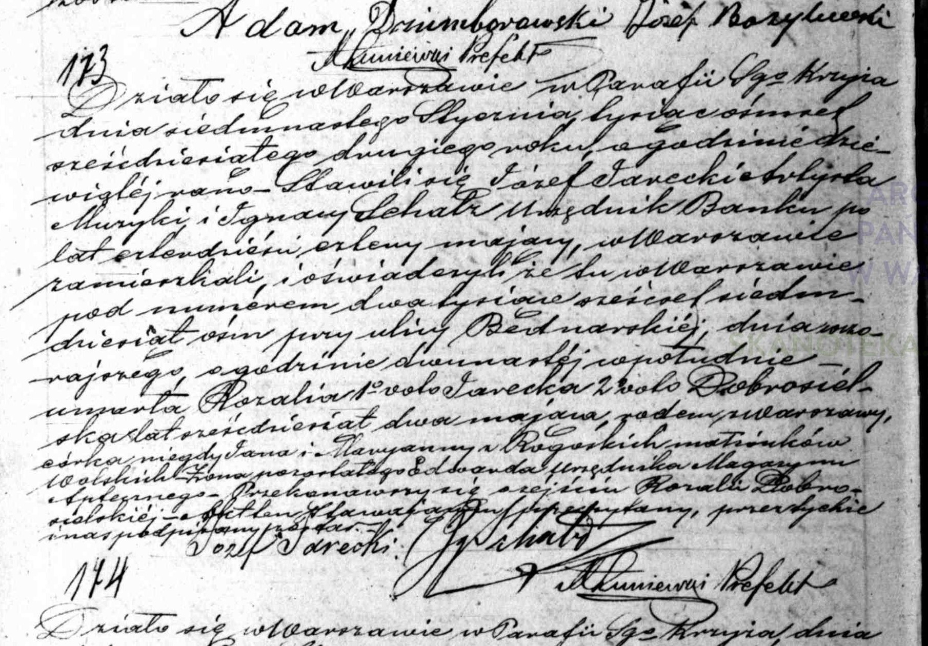 | lu.25009 | sw.159025 | sw.159026 (sw.159026) | sw.159027 (sw.159027) | Akt małżeństwa: Warszawa św. Jan (obecn. m. Warszawa), 131/1845 [indeks na http://geneteka.genealodzy.pl/] http://metryki.genealodzy.pl/metryki.php?op=kt&ar=1&zs=0161d&sy=1845&kt=2 [podgląd] |