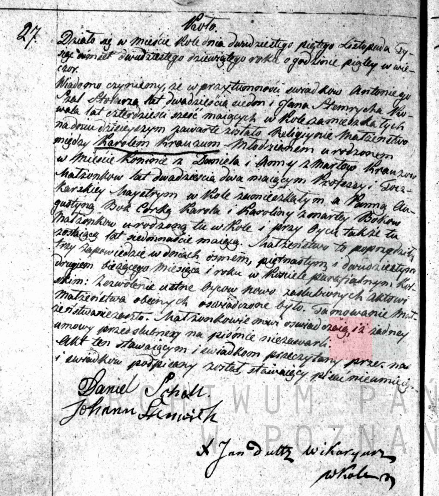 | sw.218649 | sw.218650 (sw.218650) | sw.218651 (sw.218651) | Akt małżeństwa: Koło (obecn. woj. wielkop.), 27/1829 [indeks na http://geneteka.genealodzy.pl/] http://szukajwarchiwach.pl/54/766/0/6.1/48/skan/full/46G676RGbzEs27jTBRGsnw [podgląd] |