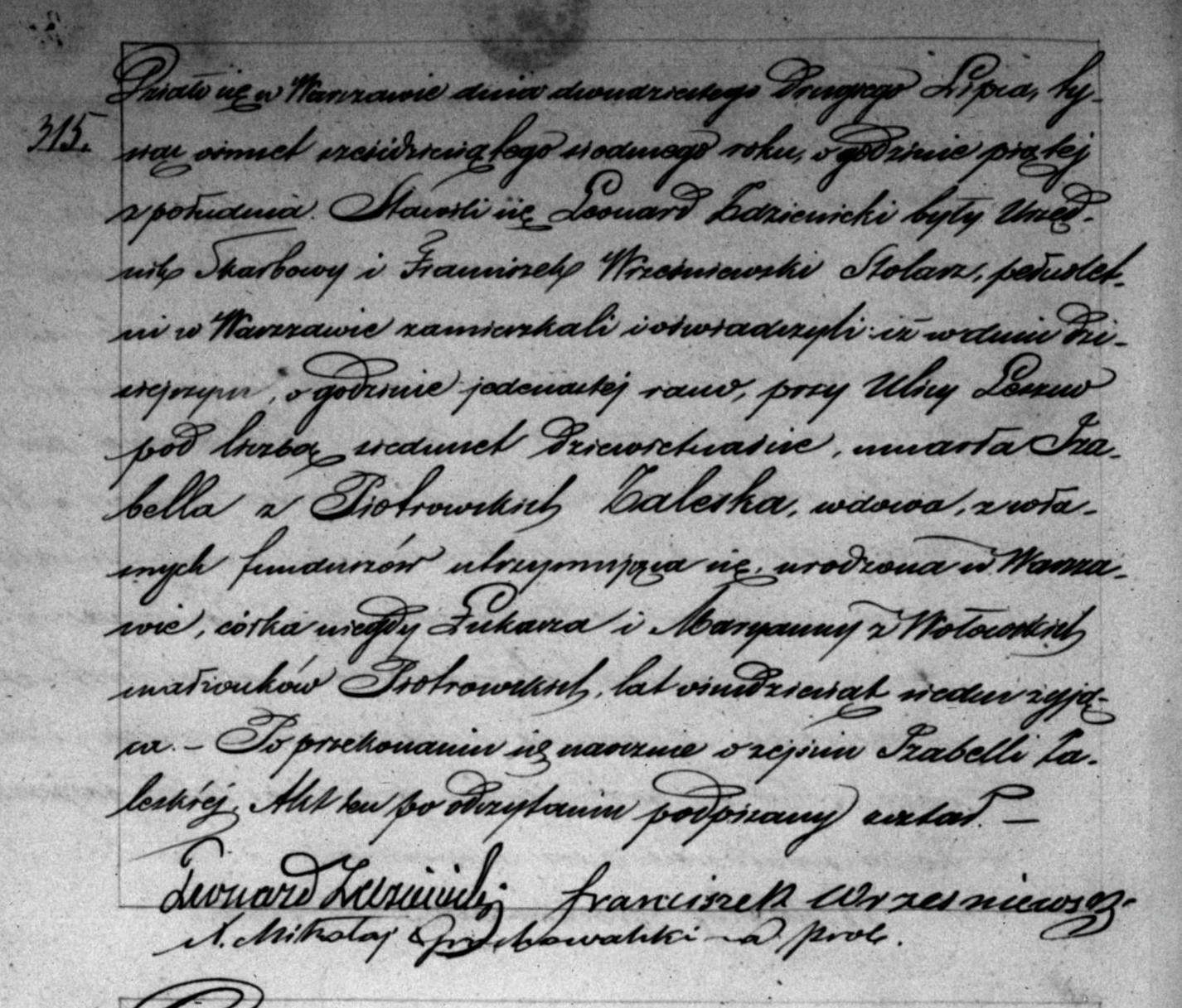 | sw.161107 | 1810 | rodzi mu się dziecko | Akt małżeństwa: Warszawa św. Andrzej (obecn. m. Warszawa), 139/1832 [indeks na http://geneteka.genealodzy.pl/] [podgląd] | |||||