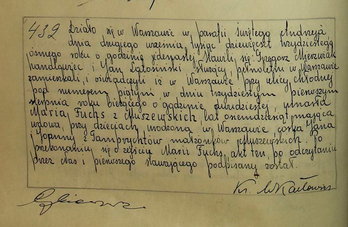 | sw.161298 | sw.1090284 | sw.1090285 (sw.161299) | sw.1090286 (sw.161300) | Akt małżeństwa: Warszawa Przemienienie Pańskie (obecn. m. Warszawa), 42/1867 [indeks na http://geneteka.genealodzy.pl/] http://metryki.genealodzy.pl/metryki.php?op=kt&ar=1&zs=1216d&sy=1867&kt=2 [podgląd] |