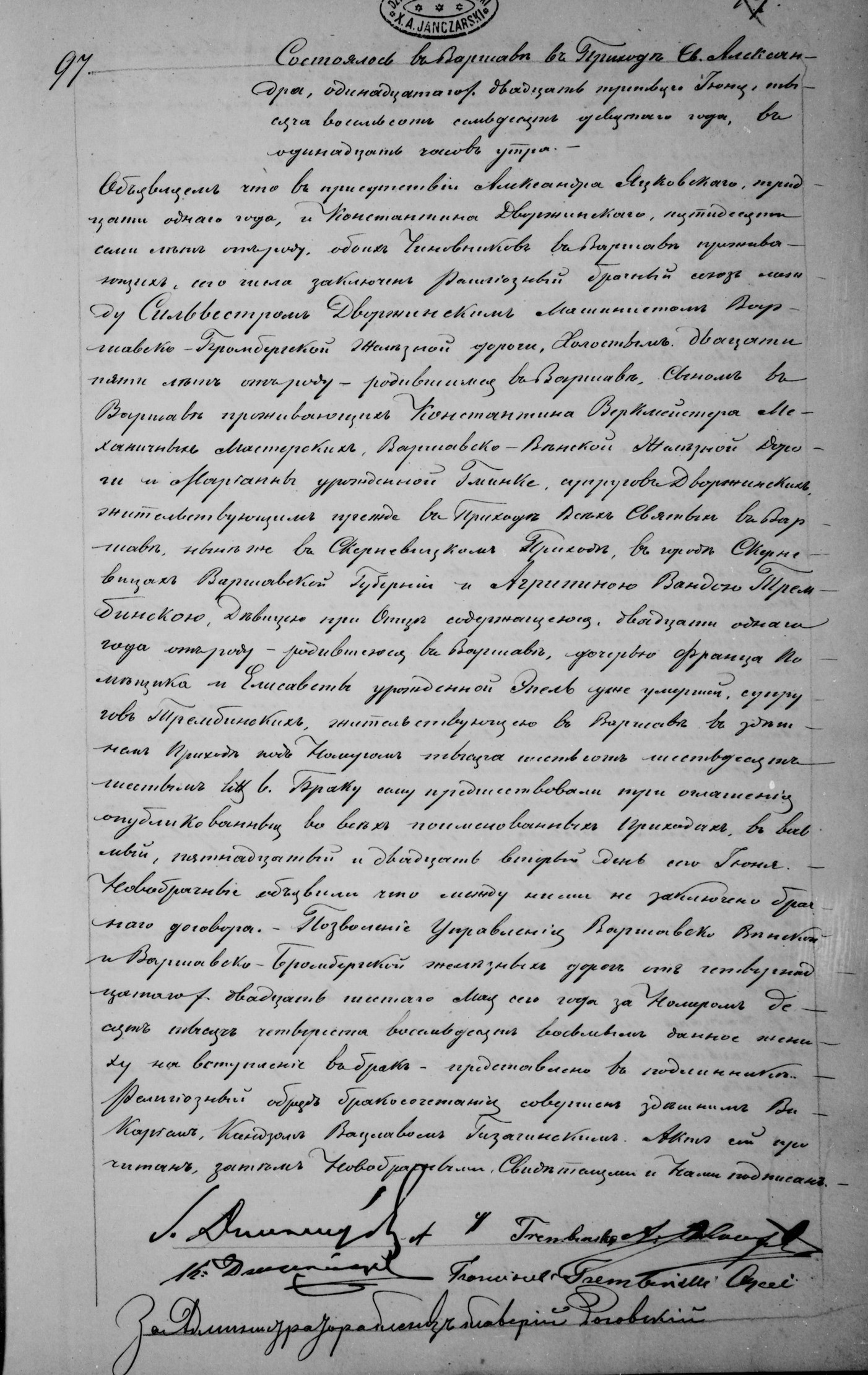 | sw.161619 | m | Konstanty | | | | | Dworzyński | | | | | Akt małżeństwa: Warszawa Wsz. Św. (obecn. m. Warszawa), 416/1888 [indeks na http://geneteka.genealodzy.pl/] http://metryki.genealodzy.pl/metryka.php?ar=8&zs=9264d&sy=312&kt=1&skan=416.jpg [podgląd] |