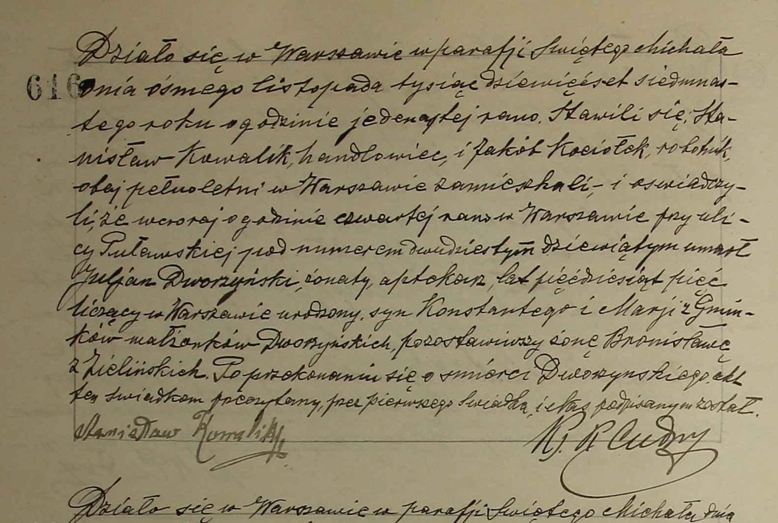 | sw.161619 | | | 1866 | | | | rodzi mu się dziecko | Akt małżeństwa: Warszawa Wsz. Św. (obecn. m. Warszawa), 416/1888 [indeks na http://geneteka.genealodzy.pl/] http://metryki.genealodzy.pl/metryka.php?ar=8&zs=9264d&sy=312&kt=1&skan=416.jpg [podgląd] |