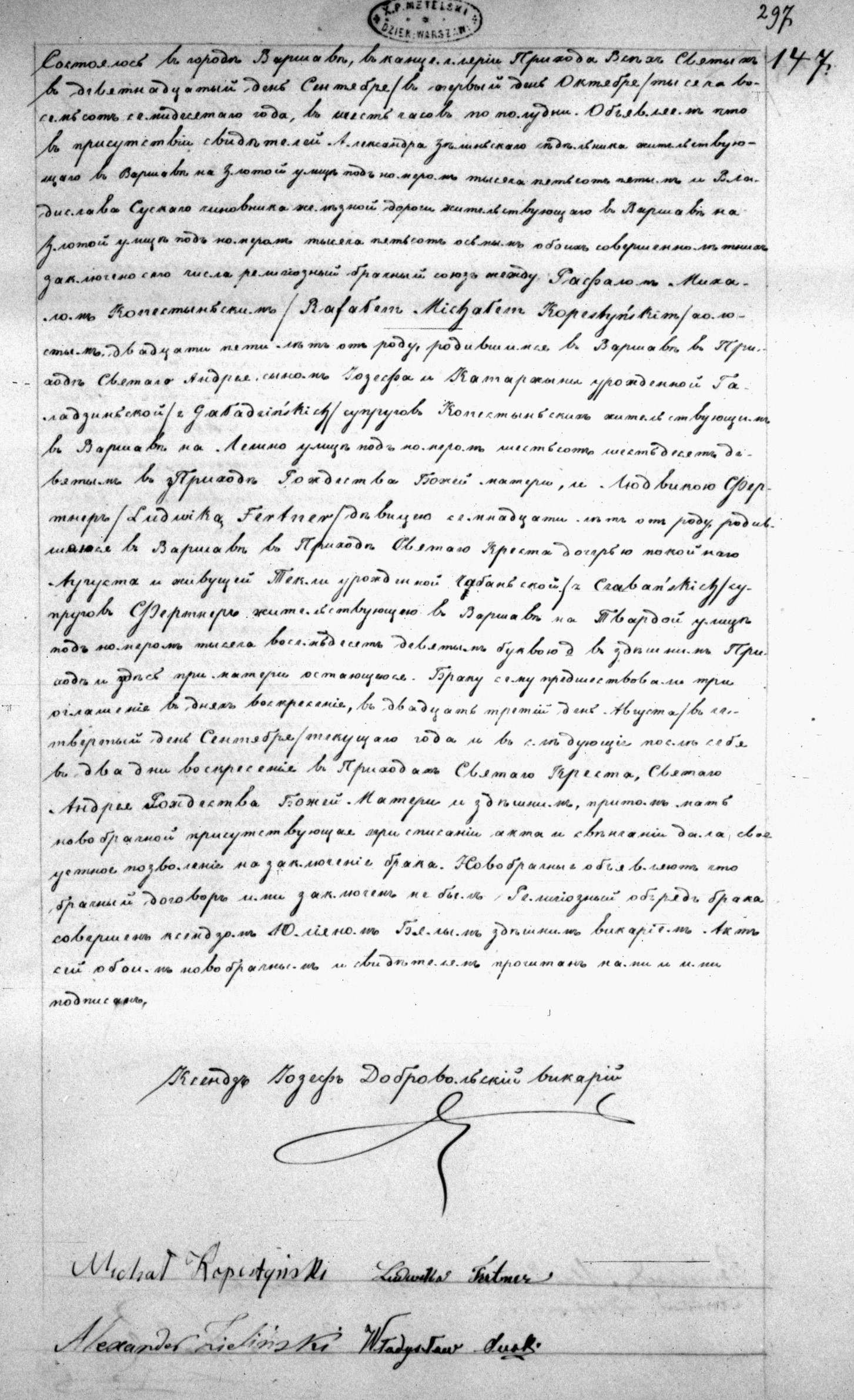 | sw.161808 | | | 1849 | | | | wychodzi za mąż | Akt małżeństwa: Warszawa Wsz. Św. (obecn. m. Warszawa), 65/1870 [indeks na http://geneteka.genealodzy.pl/] http://metryki.genealodzy.pl/metryka.php?ar=8&zs=9264d&sy=301&kt=2&skan=065.jpg [podgląd] |