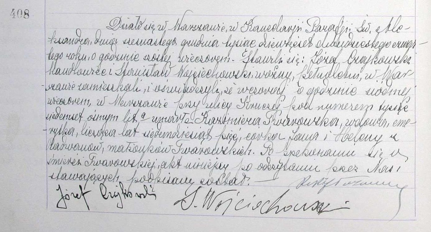 | sw.162414 | | | 1841 | | | | wychodzi za mąż | Akt małżeństwa: Warszawa Wsz. Św. (obecn. m. Warszawa), 56/1868 [indeks na http://geneteka.genealodzy.pl/] http://metryki.genealodzy.pl/metryka.php?ar=8&zs=9264d&sy=300&kt=3&skan=056.jpg [podgląd] |