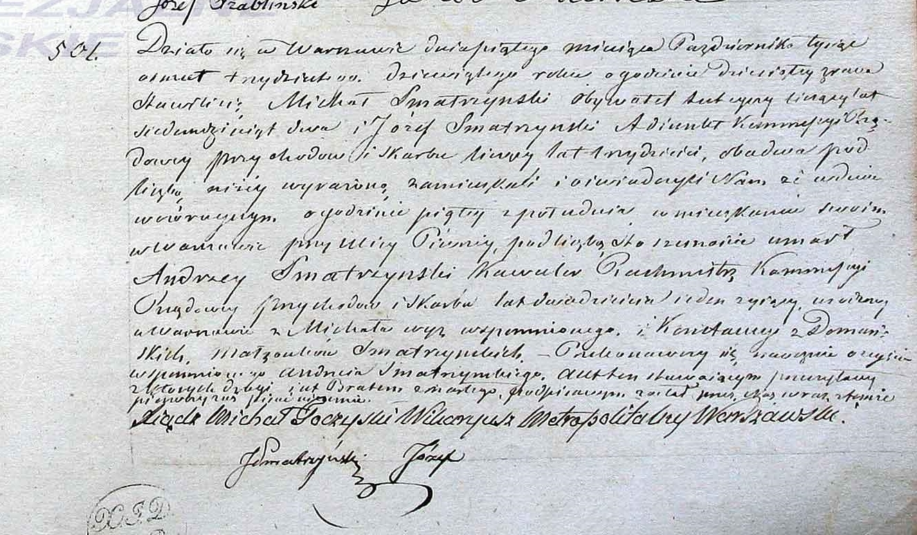 | sw.108195 | sw.162506 | sw.162507 (sw.162507) | sw.162508 (sw.162508) | Akt małżeństwa: Warszawa św. Jan (obecn. m. Warszawa), 63/1831 [indeks na http://geneteka.genealodzy.pl/] http://metryki.genealodzy.pl/metryka.php?ar=8&zs=9233d&sy=317&kt=1&skan=062-063.jpg [podgląd] |