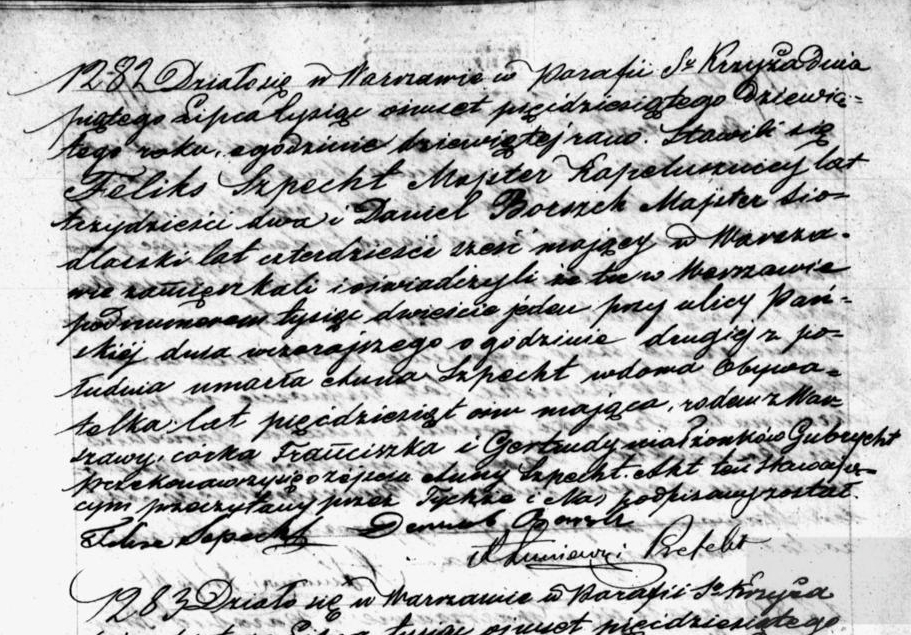 | genetekaz.4968191 | 4 | jul | 1859 | | xpar.1450 | Akt zgonu: Warszawa, par. św. Krzyża (obecn. m. Warszawa), 1282/1859 http://szukajwarchiwach.pl/72/158/0/-/31/skan/full/3iGaADAZC8UnFg1ZqSOzIA [podglad] | | Akt zgonu obecny w bazie Geneteka |
