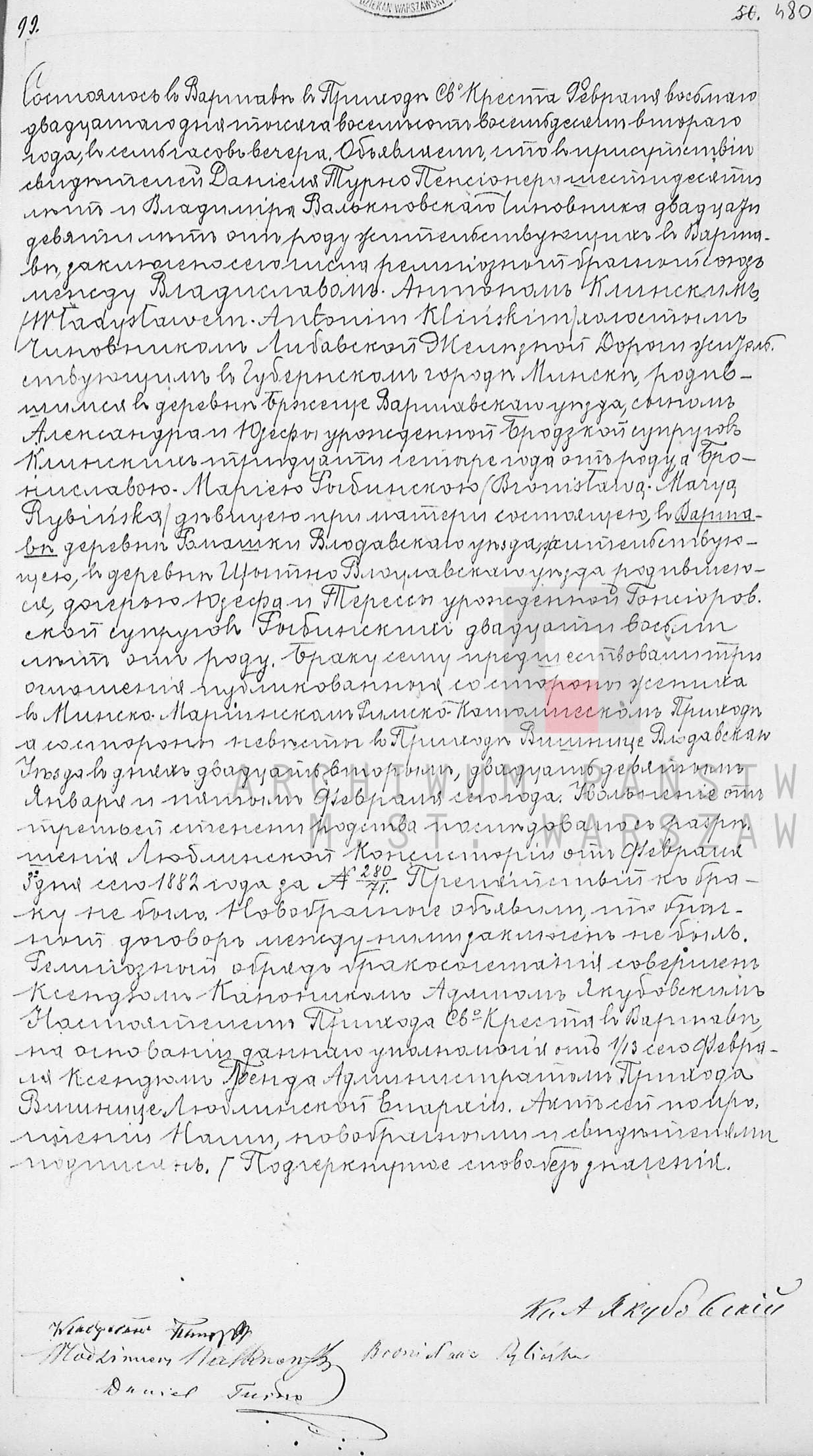 | sw.218554 | sw.289695 | sw.289696 (sw.162537) | sw.289697 (sw.162538) | Akt małżeństwa: Warszawa św. Krzyż (obecn. m. Warszawa), 222/1899 [indeks na http://geneteka.genealodzy.pl/] http://metryki.genealodzy.pl/metryki.php?op=kt&ar=1&zs=0158d&sy=1899b&kt=2 [podgląd] |