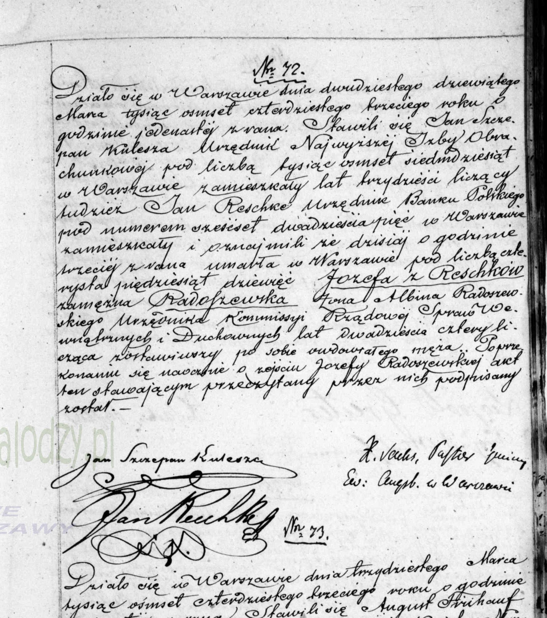 | sw.446029 | sw.432811 (sw.432811) | sw.427576 (sw.427576) | Akt małżeństwa: Warszawa parafia Ewangelicko-Augsburska (obecn. m. Warszawa), 62/1842 [indeks na http://geneteka.genealodzy.pl/] http://metryki.genealodzy.pl/metryki.php?op=kt&ar=1&zs=0181d&sy=1842&kt=2 [podgląd] |