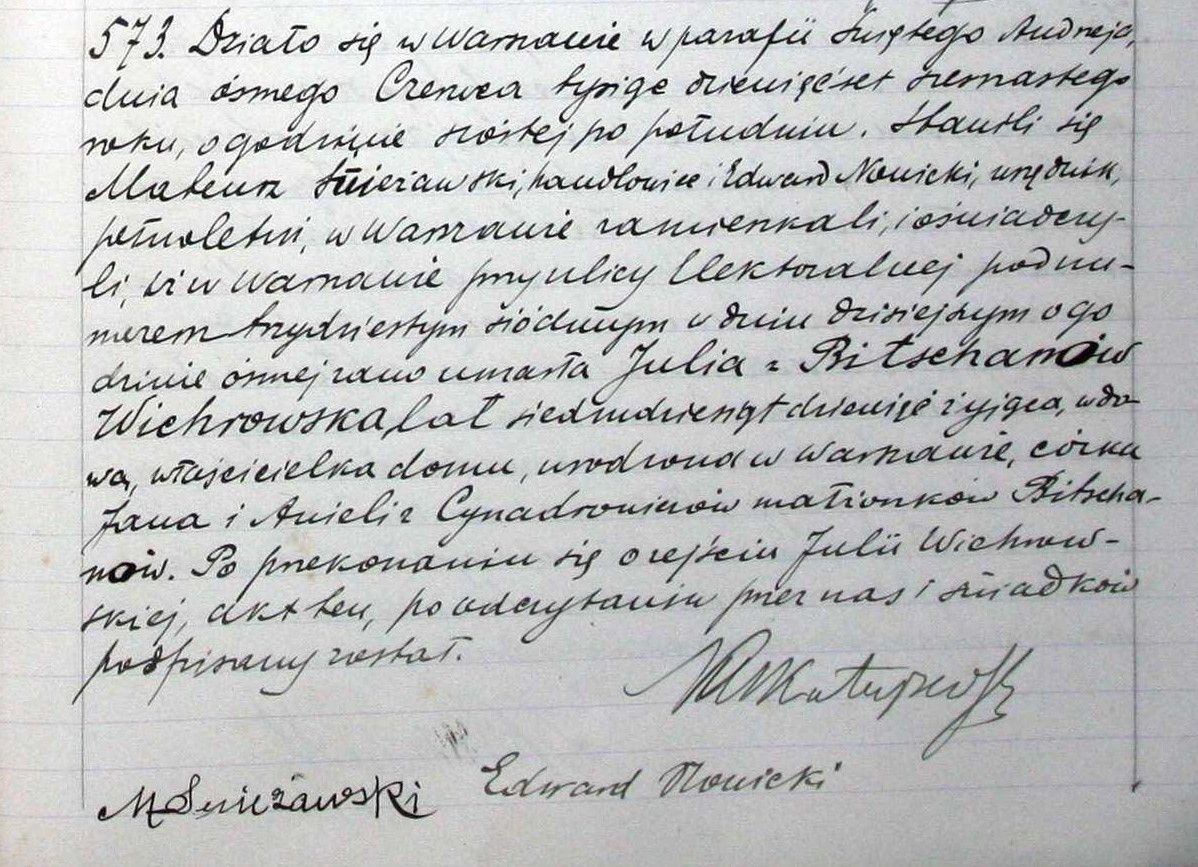 | sw.163982 | | | 1842 | | | | rodzi mu się dziecko | Akt małżeństwa: Warszawa św. Andrzej (obecn. m. Warszawa), 131/1857 [indeks na http://geneteka.genealodzy.pl/] https://metryki.genealodzy.pl/ar1-zs0159d-sy1857-kt2 [podgląd] |