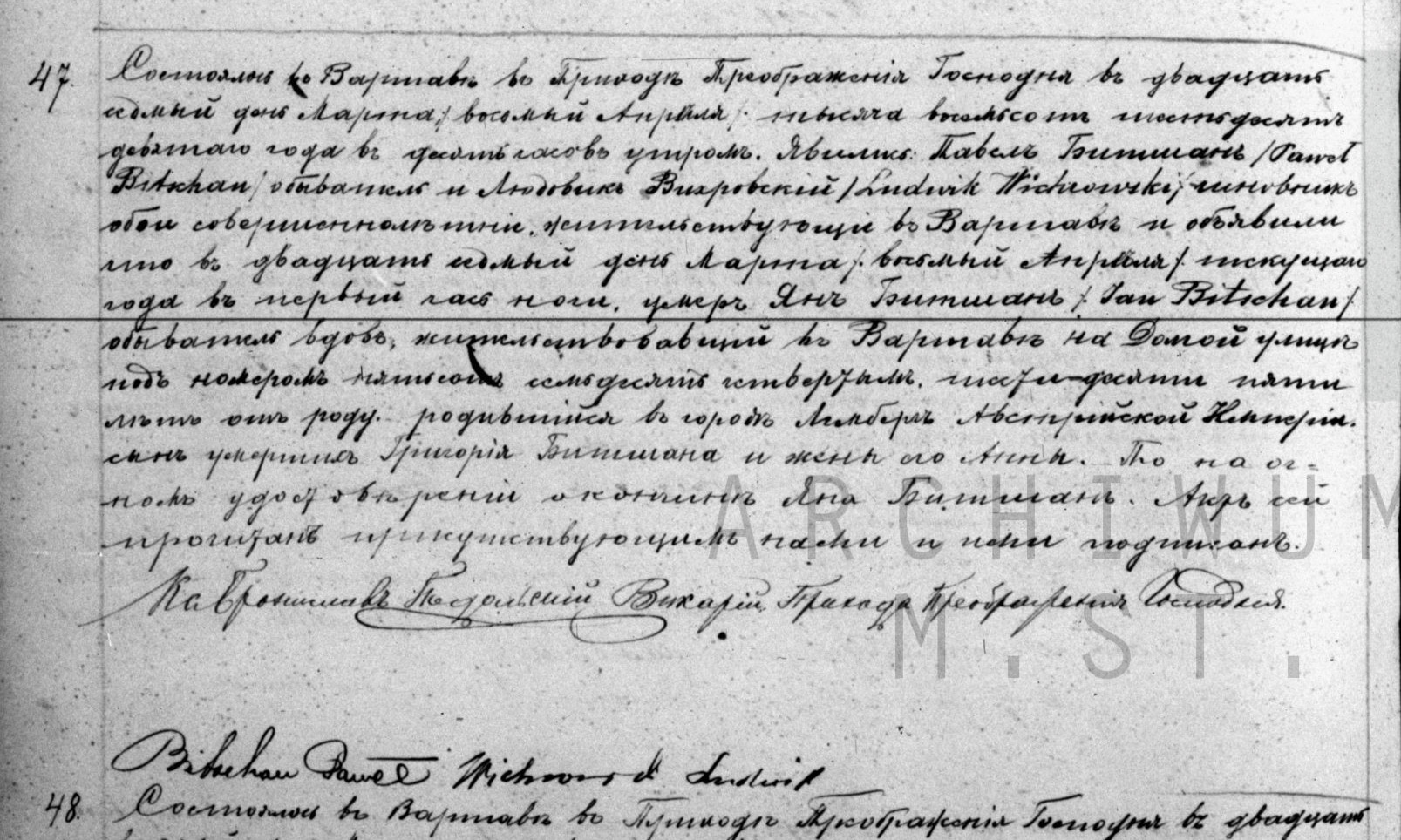 | sw.744291 | m | Jan | | | | | Bitschan | | | | | Akt małżeństwa: Warszawa Przemienienie Pańskie (obecn. m. Warszawa), 38/1885 [indeks na http://geneteka.genealodzy.pl/] http://metryki.genealodzy.pl/metryki.php?op=kt&ar=1&zs=1216d&sy=1885&kt=2 [podgląd] |