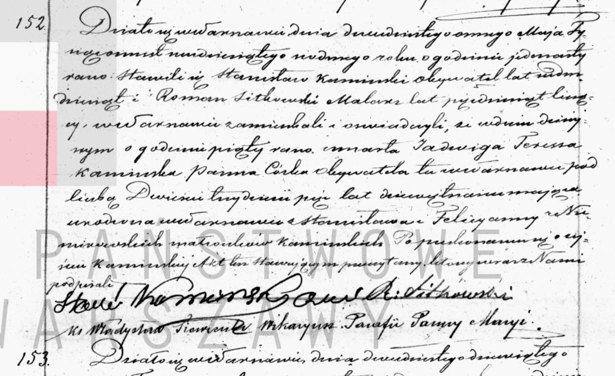 | sw.225413 | sw.225413 | sw.164767 (sw.164767) | sw.164770 (sw.164770) | Akt małżeństwa: Warszawa Nawiedzenie NMP (obecn. m. Warszawa), 219/1862 [indeks na http://geneteka.genealodzy.pl/] http://metryki.genealodzy.pl/metryki.php?op=kt&ar=1&zs=0160d&sy=1862&kt=2 [podgląd] |