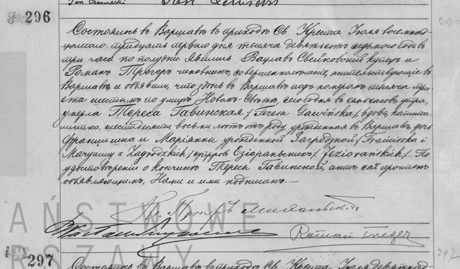 | genetekaz.11250794 | 31 | jul | 1907 | xpar.1450 | Akt zgonu: Warszawa św. Krzyż (obecn. m. Warszawa), 296/1907 http://metryki.genealodzy.pl/metryki.php?op=kt&ar=1&zs=0158d&sy=1907&kt=3 [podglad] | Akt zgonu obecny w bazie Geneteka | ||