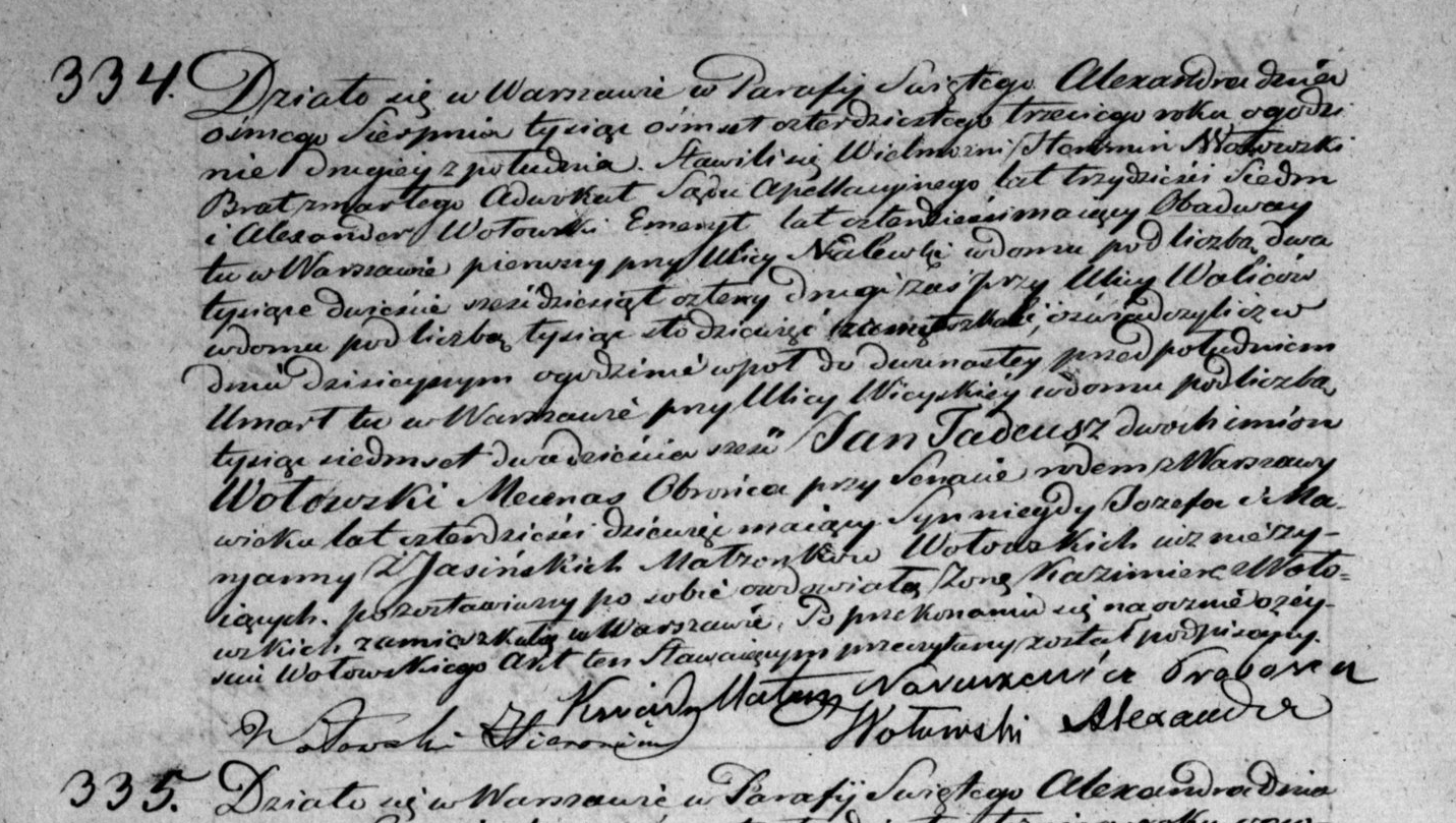| sw.165103 | | | 1835 | | | | żeni się | Akt małżeństwa: Warszawa, par. św. Andrzeja (obecn. m. Warszawa), 82/1835 [indeks na http://geneteka.genealodzy.pl/] https://szukajwarchiwach.pl/72/159/0/-/6/skan/full/XRW4Qt2CAxgnu6lnnAR1yg [podgląd] |