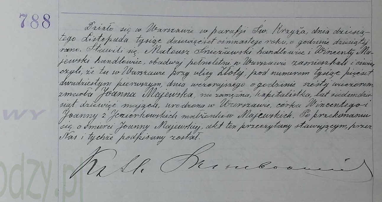 | sw.1044772 | sw.1044772 | psb.16566.1 (psb.16566.1) | sw.165136 (sw.165136) | Akt zgonu: Warszawa św. Krzyż (obecn. m. Warszawa), 788/1918 [indeks na http://geneteka.genealodzy.pl/] http://metryki.genealodzy.pl/metryki.php?op=kt&ar=1&zs=0158d&sy=1918&kt=3 [podgląd] |