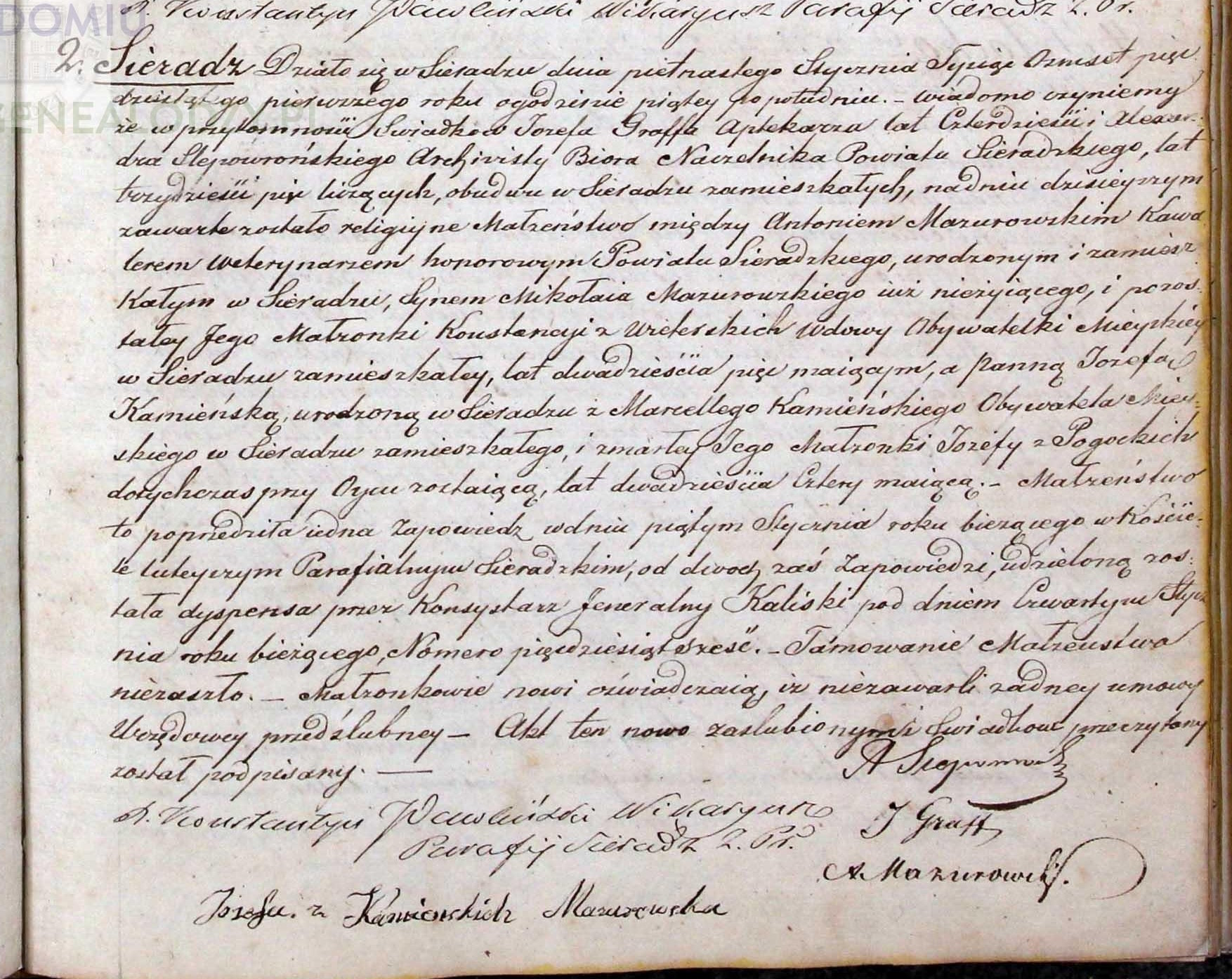 | sw.318994 | sw.656172 | sw.171346 (sw.171346) | sw.171347 (sw.171347) | Akt małżeństwa: Sieradz (obecn. woj. łódz.), 41/1854 [indeks na http://geneteka.genealodzy.pl/] http://metryki.genealodzy.pl/metryki.php?op=kt&ar=3&zs=1663d&sy=1854&kt=2 [podgląd] |