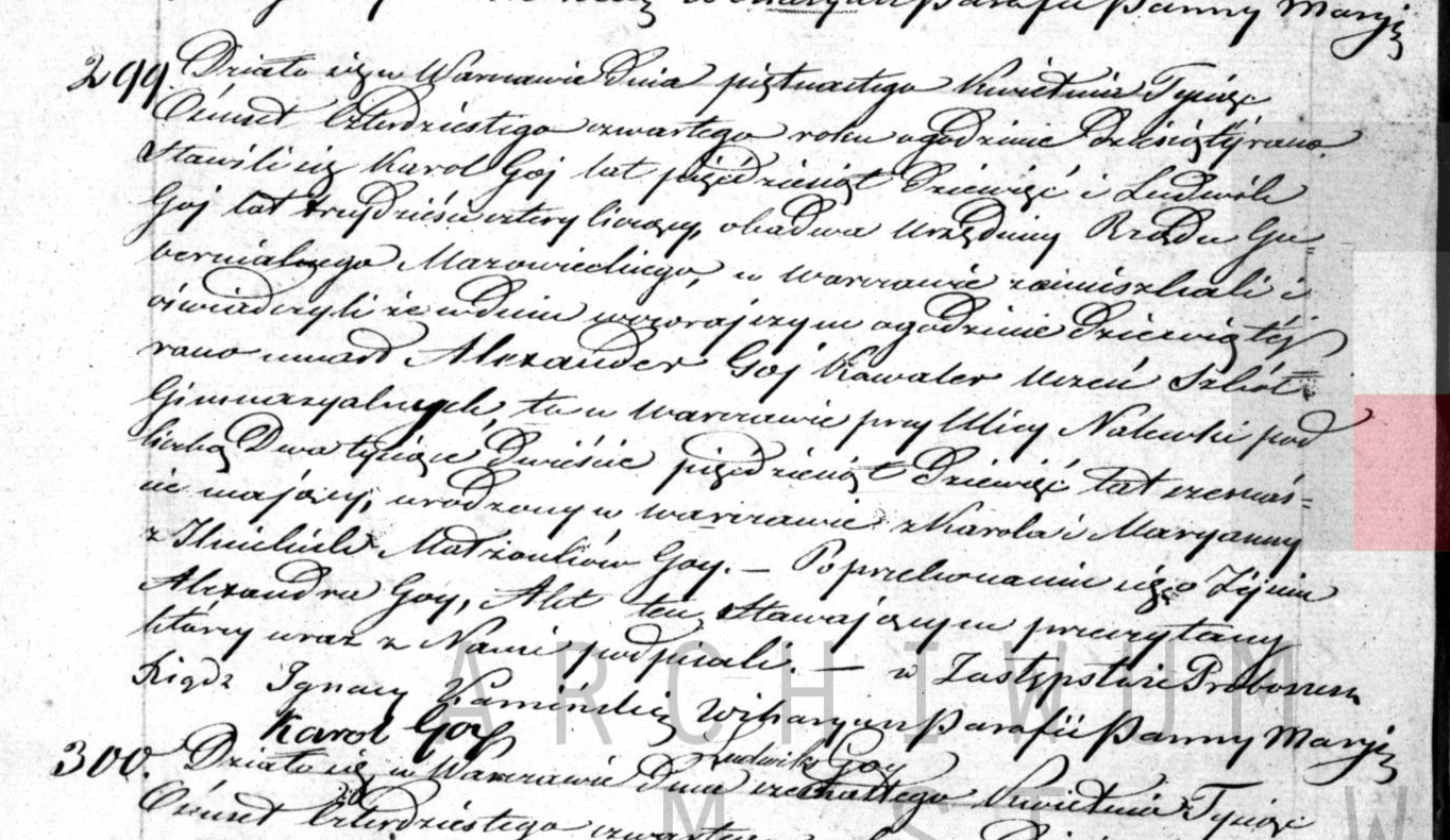 | sw.178309 | m | Karol | | | | | Goy | | | | | Akt małżeństwa: Warszawa św. Jan (obecn. m. Warszawa), 57/1841 [indeks na http://geneteka.genealodzy.pl/] http://metryki.genealodzy.pl/metryki.php?op=kt&ar=1&zs=0161d&sy=1841&kt=2 [podgląd] |