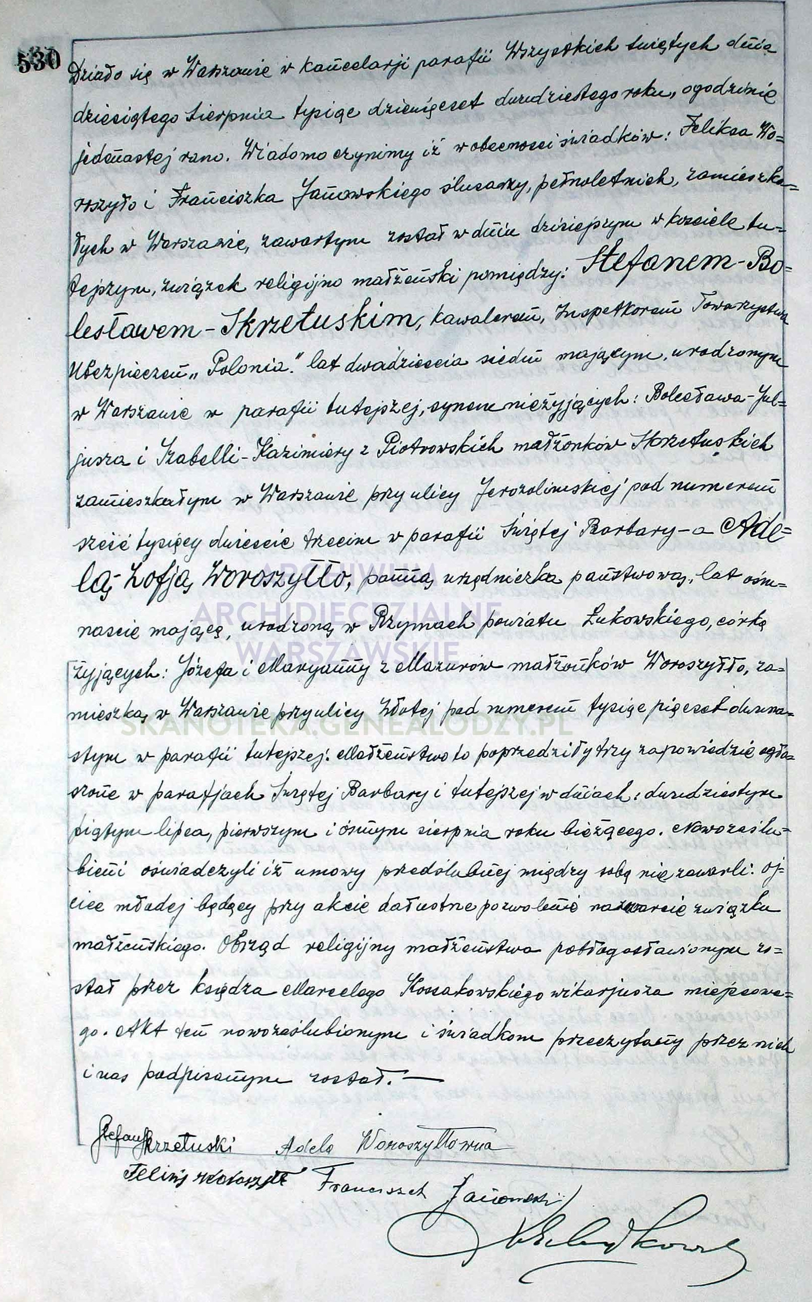 | sw.194263 | sw.194264 (sw.194264) | sw.194265 (sw.194265) | Akt małżeństwa: Warszawa Wsz. Św. (obecn. m. Warszawa), 101/1891 [indeks na http://geneteka.genealodzy.pl/] http://metryki.genealodzy.pl/metryka.php?ar=8&zs=9264d&sy=315&kt=1&skan=101.jpg [podgląd] |