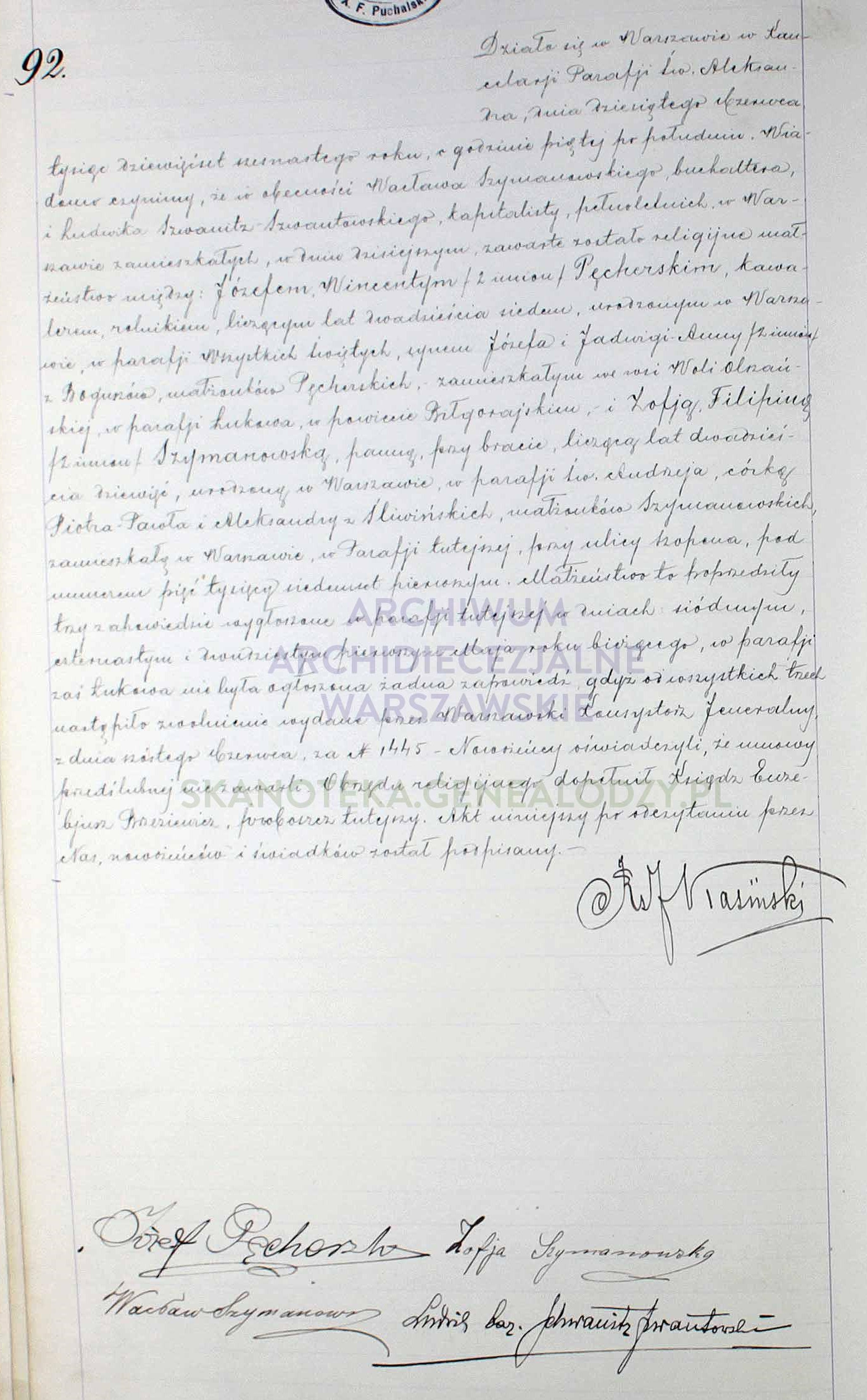 | sw.198545 | le.3736.5.5 (le.3736.5.5) | sw.163101 (sw.163101) | Akt małżeństwa: Warszawa św. Aleksander (obecn. m. Warszawa), 1/1871 [indeks na http://geneteka.genealodzy.pl/] http://metryki.genealodzy.pl/metryka.php?ar=8&zs=9214d&sy=307&kt=6&skan=001.jpg [podgląd] |