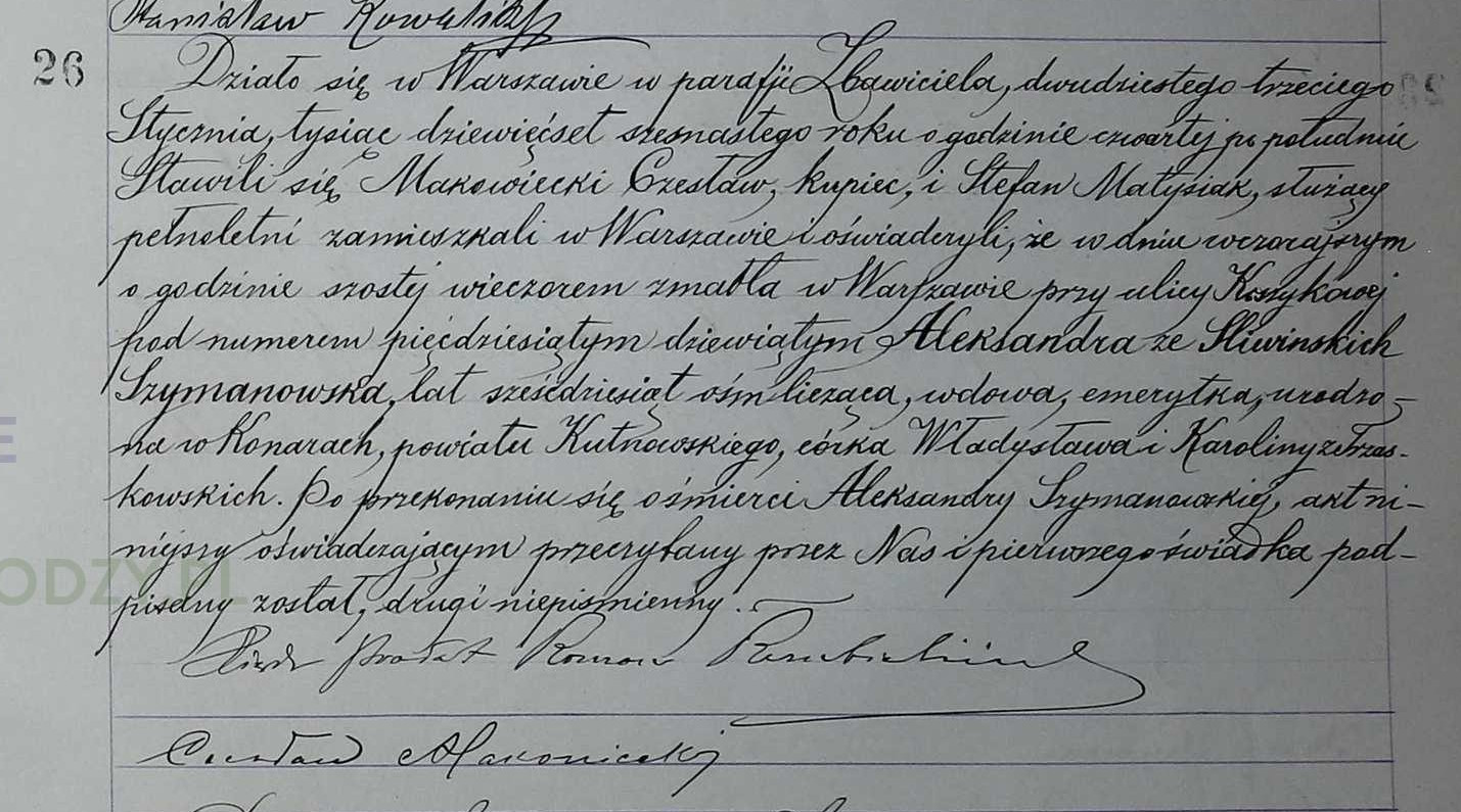 | genetekaz.11653727 | 22 | jan | 1916 | | xpar.3828 | Akt zgonu: Warszawa Najświętszego Zbawiciela (obecn. m. Warszawa), 26/1916 http://localhost/mjm/zbawiciel_1916_022-027.jpg [podglad] | | Akt zgonu obecny w bazie Geneteka |