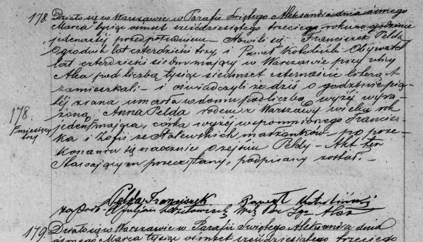 | sw.204005 | | | 1858 | | | | rodzi mu się dziecko | Akt małżeństwa: Warszawa św. Aleksander (obecn. m. Warszawa), 170/1886 [indeks na http://geneteka.genealodzy.pl/] http://metryki.genealodzy.pl/metryki.php?op=kt&ar=1&zs=0162d&sy=1886b&kt=2 [podgląd] |
